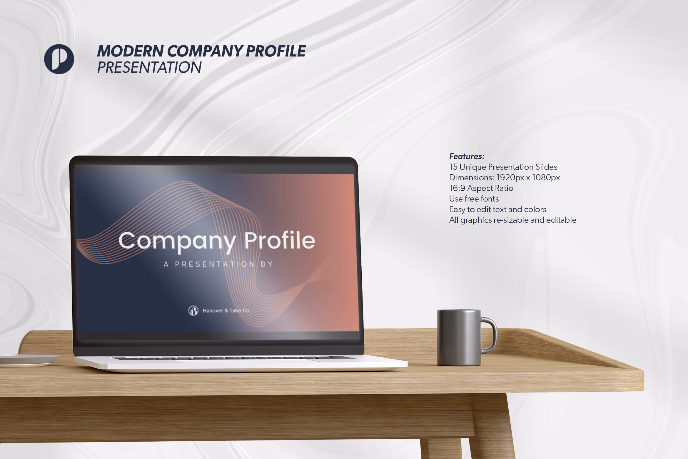 Using wavy lines as the accent in every slide of the presentation creates a dynamic vibe to the template. The combination of dark blue, copper, and white for the text makes this template look more powerful. With its well-organized layout, it will be easy to put every information about your company in its right place. You can use this template for your company profile, business proposal, marketing, pitch deck, or any other business presentation.