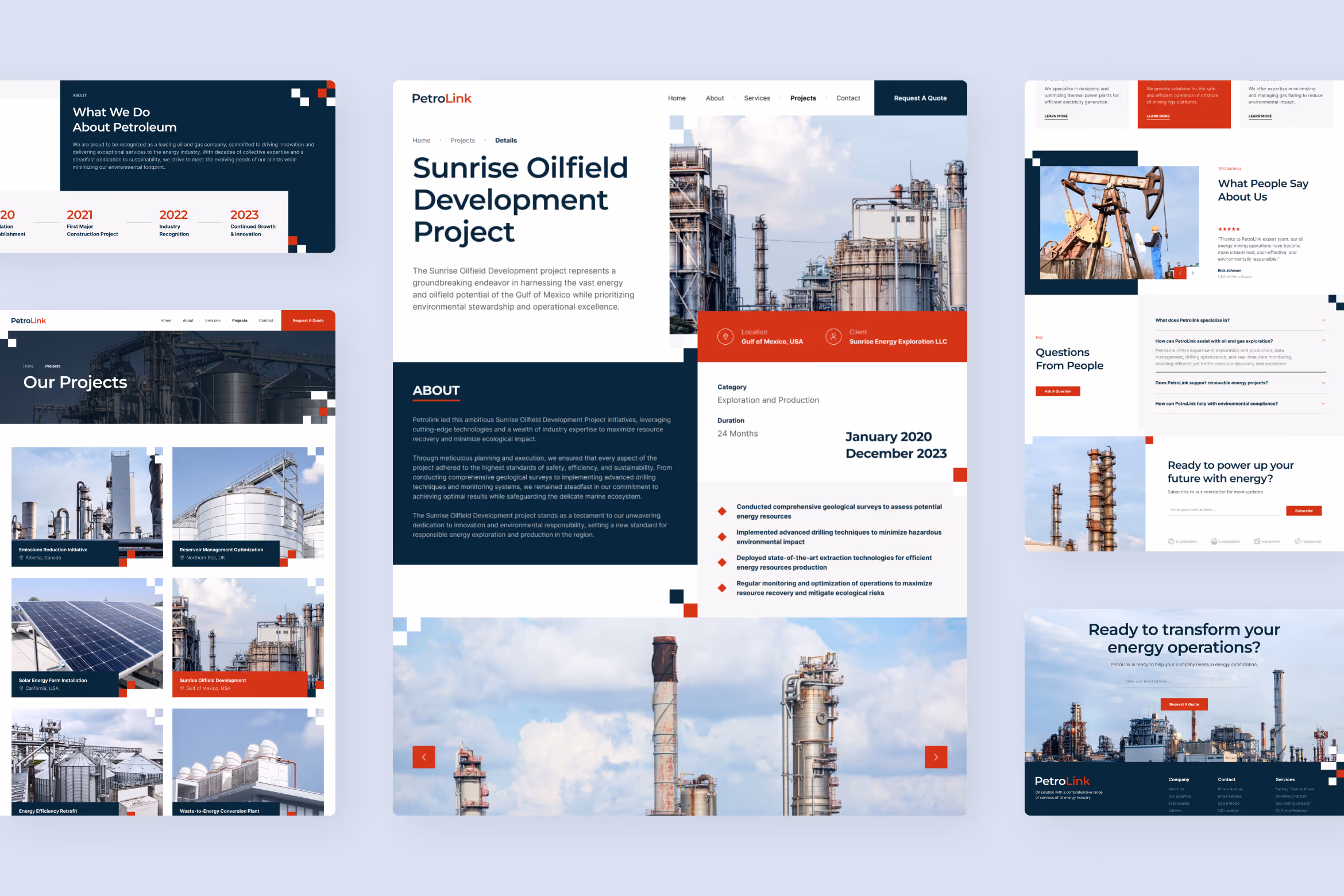 Gain the trust of your clients with a more convincing website appearance using PetroLink, the modern and professional oil & gas company website UI Figma template. With the combination of blue and red as the accent, it brings a trustworthy feeling to people. The arrangement of every section has a dynamic vibe yet still looks neat and professional. This template is perfect for the oil and gas business with a sense of movement.