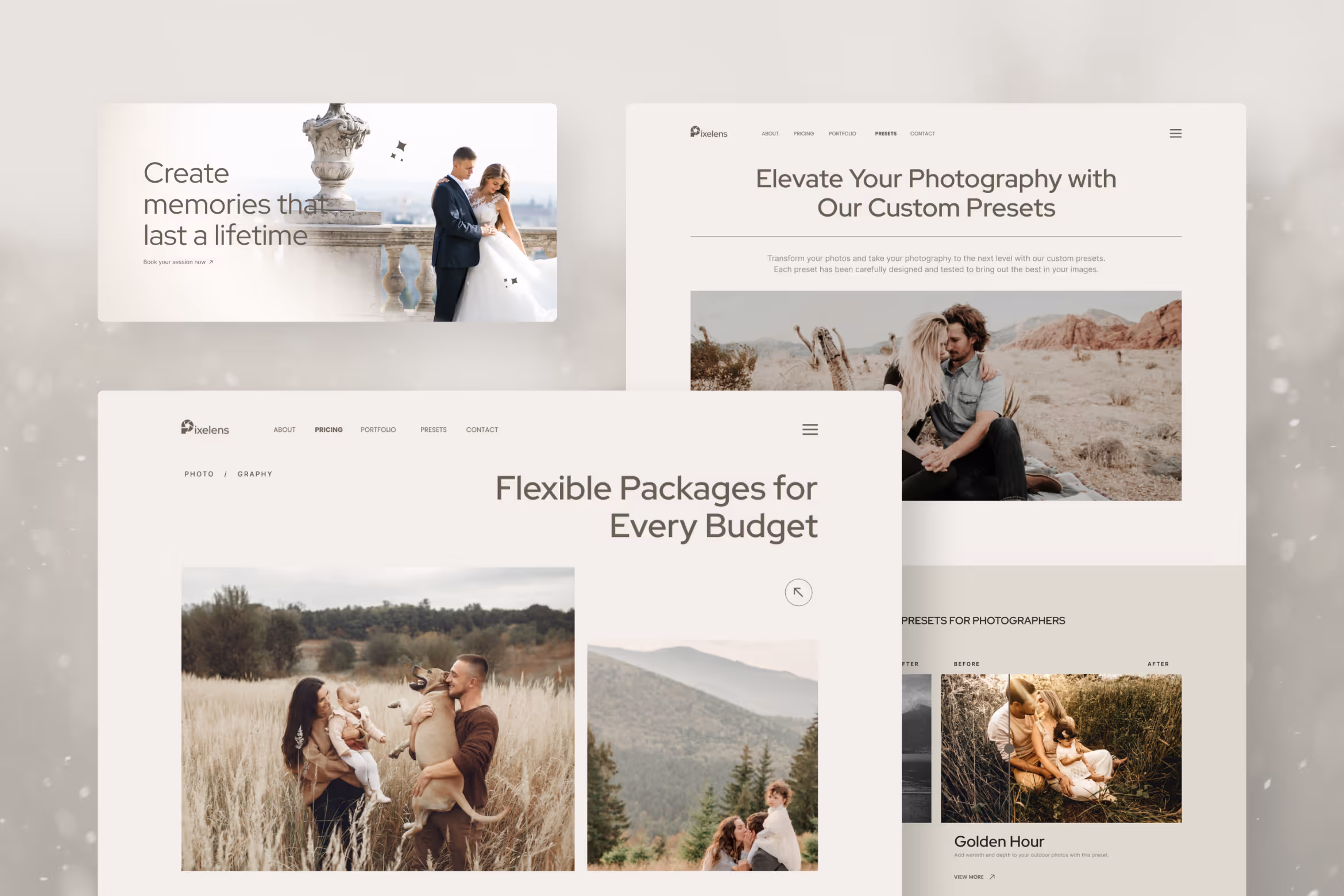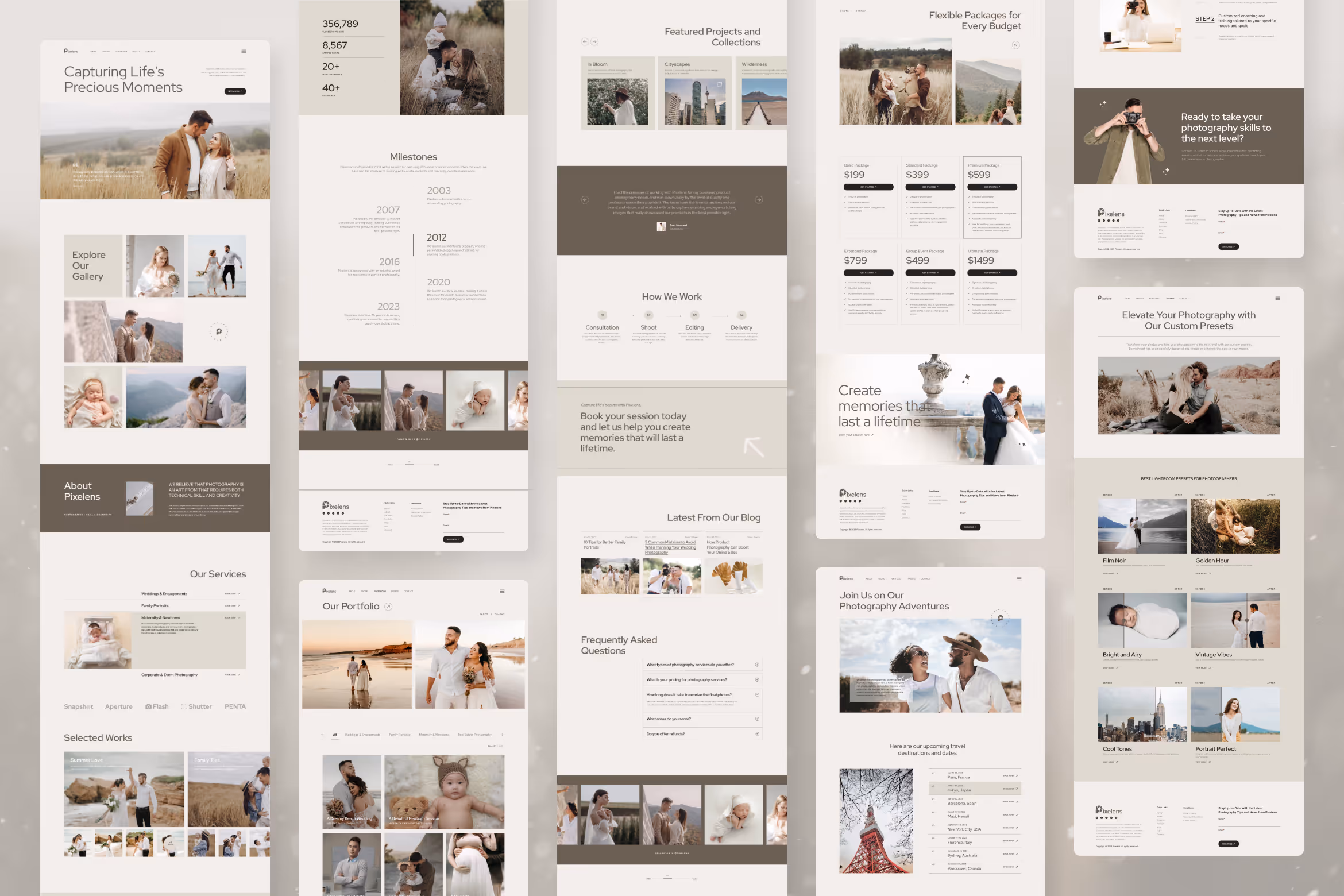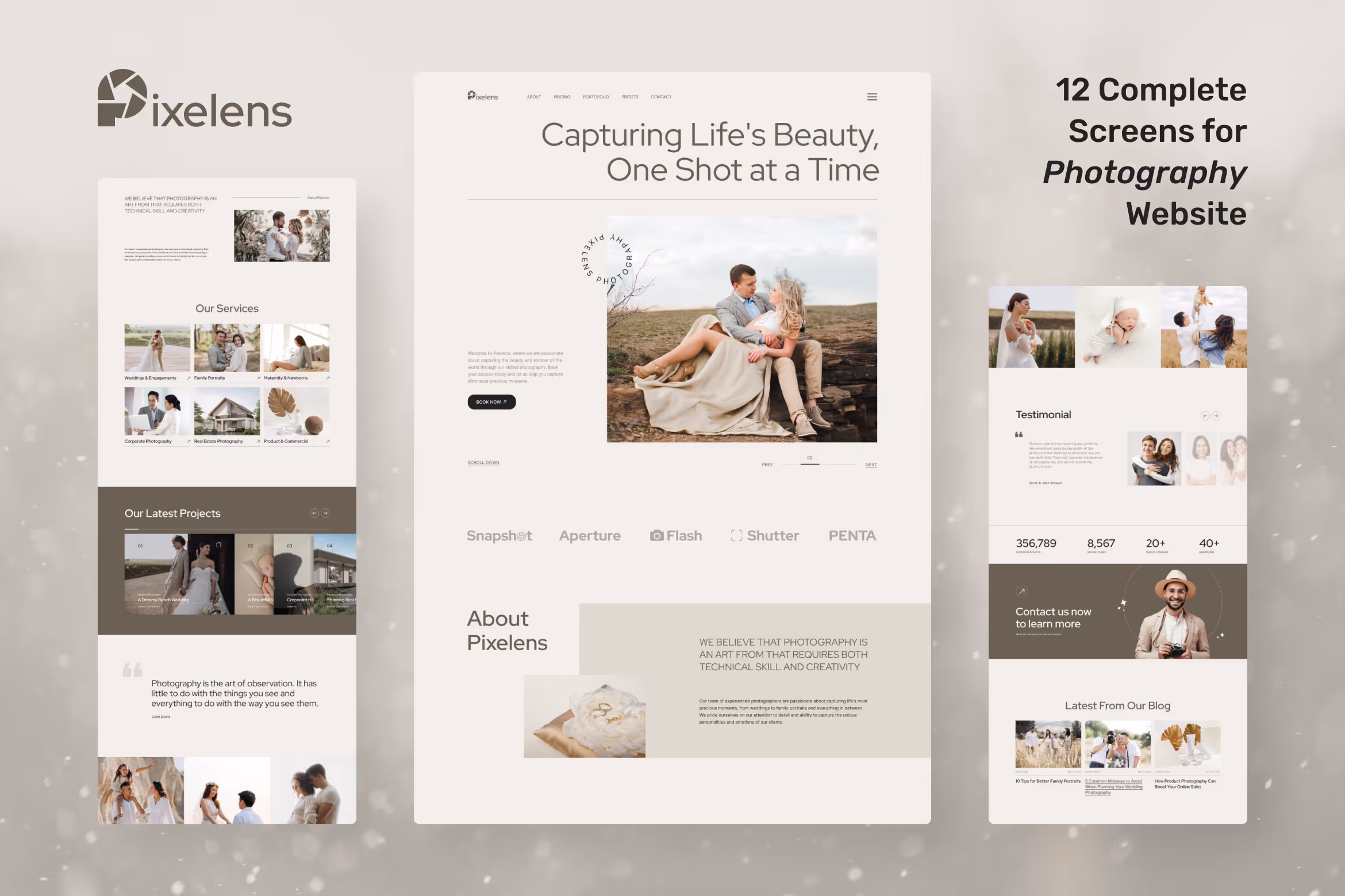No events or celebrations will be complete without a photographer. Thus, many people are very selective in choosing which photography service can take and deliver the best shot. To pass their first evaluation, you must offer the best photoshoots using the website you have. It will easy for the prospective client to see whether your photography style and service meet their expectation. Therefore, you must maximize your website appearance using Pixelens, a minimalist photography website design UI template. It is perfect for your photography studio or your own photography service.