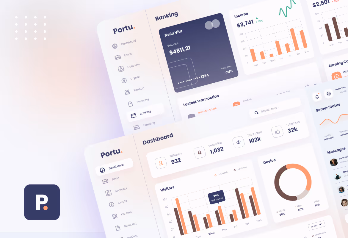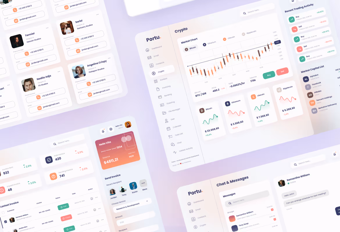 Organize every project and event of your company handle by using Portu, an elegant and professional admin dashboard template that will help you do everything you need to do. It is suitable for company admin, project admin, email dashboard, invoice admin, calendar dashboard, crypto dashboard, Kanban dashboard and many more.