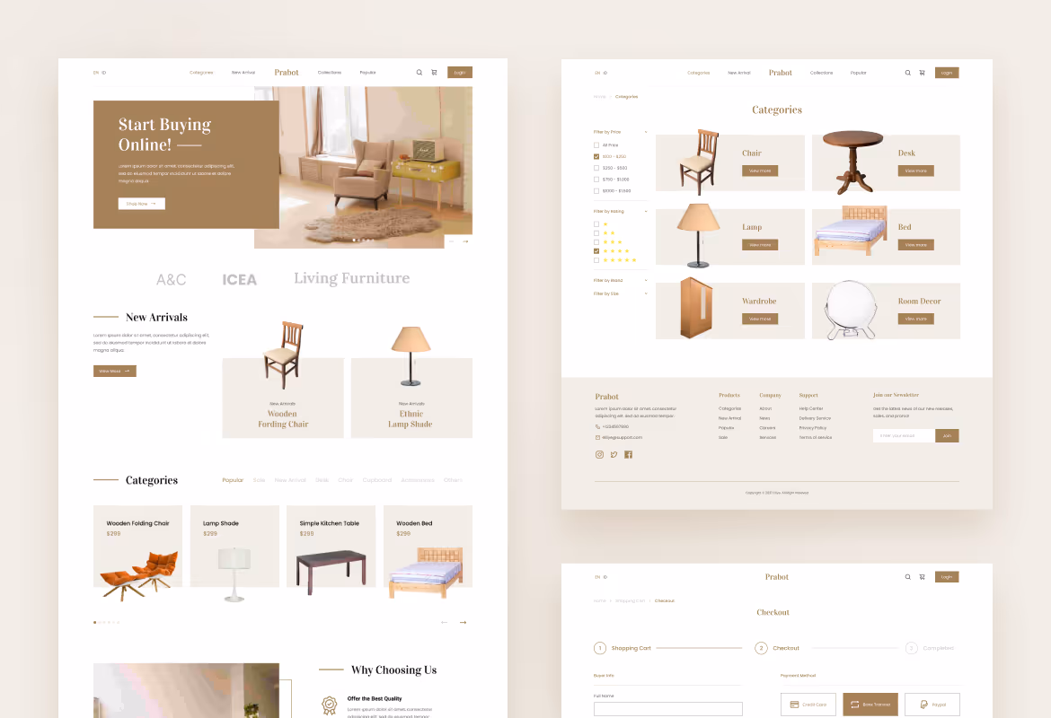 It has a clean and neat appearance that gives an elegant feel when you see the user interface of the website. The product categorization, check-out section, payment section and any other section are made based on your online shop needs so your customers will be easy to purchase furniture from your website.