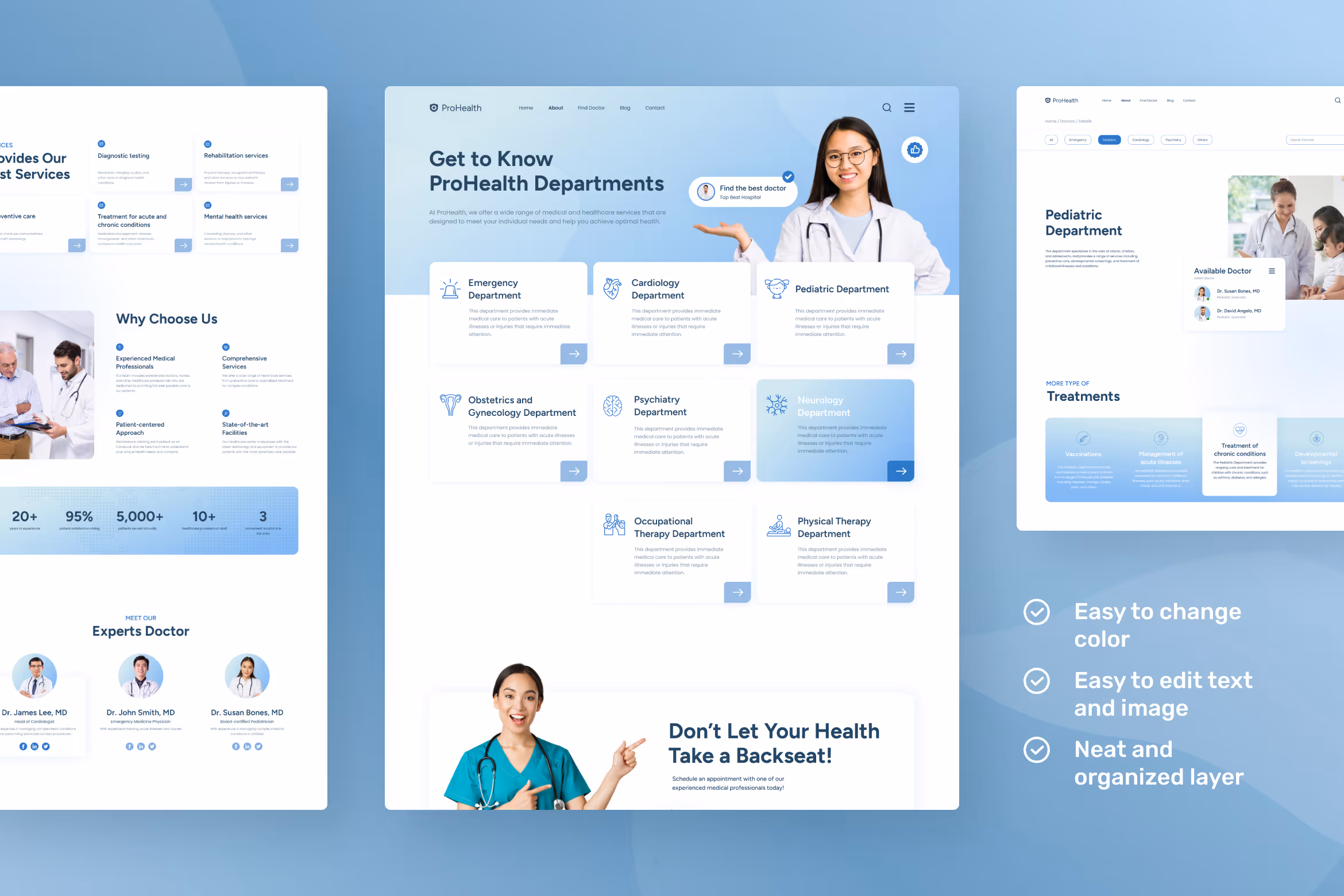 Running a medical and healthcare center is not only giving the best facilities but also serving the best services that everybody can access. Providing a high-technology website with a convenient user interface design can be a solution to reach a wider audience. Make your healthcare website even more attractive that ease the journey of your audience with this ProHealth, a Delight Blue Minimalist Modern Medical & Healthcare Website Design.