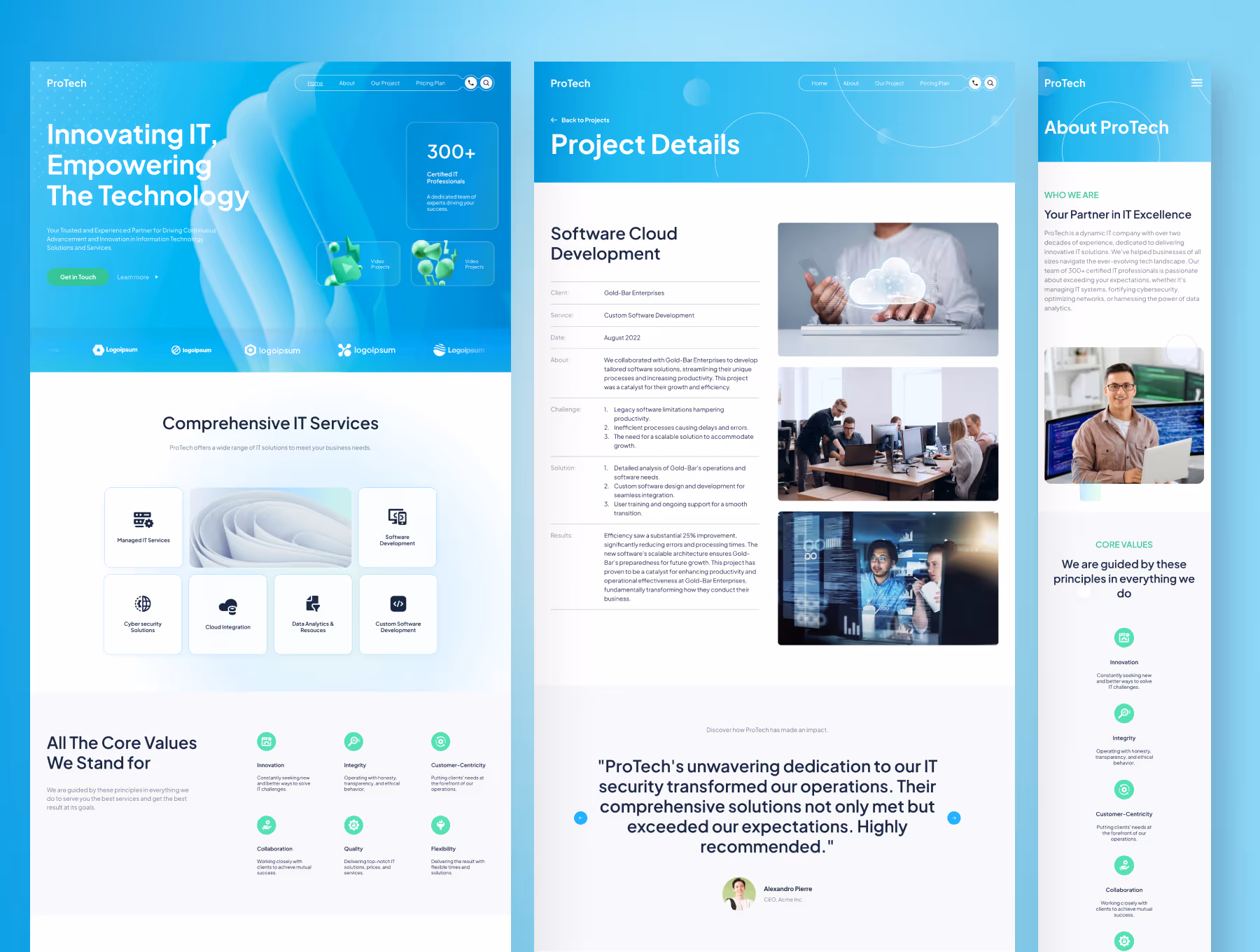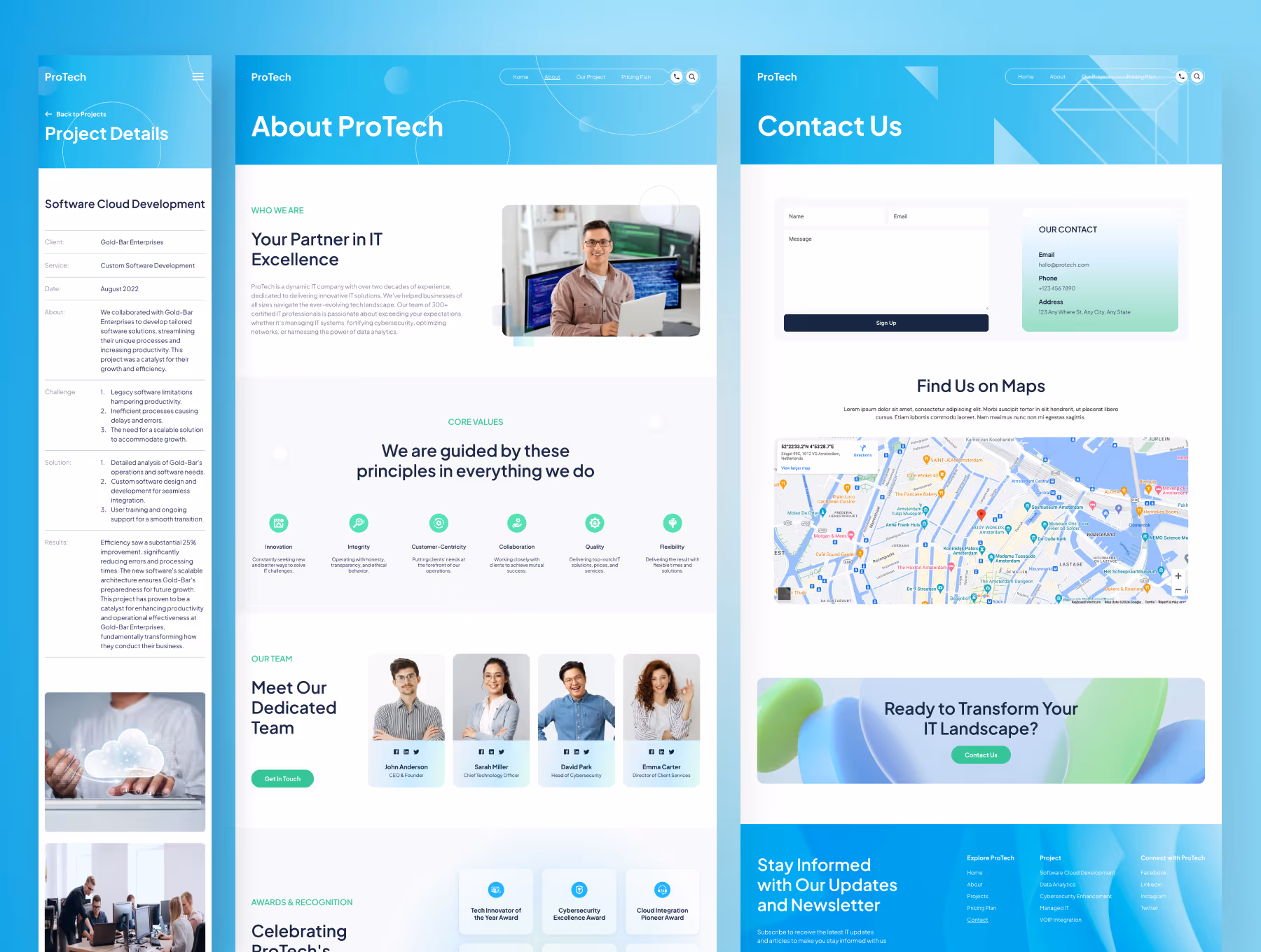 Provide a refreshing website look to appeal to your audiences and users using Protech, a clean and fresh IT company website Framer template. The combination of clear blue sky and white as the main colors strengthens the freshness of the template. The green accent in some parts provides a calming scene to the eyes. Not to mention it has a well-organized layout that makes the website easy to explore. Apply this template to your IT company website and get a better engagement for better revenue.