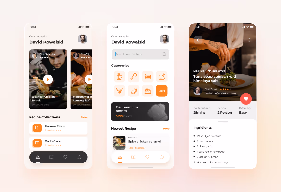 Modern iOS User Interface design template for a Food recipe sharing app design. This template is ideal for a social network, recipe sharing, article, chat, news feed, and any food app design. Make your app design looks stunning and eye-catching using this template. This template includes 11 unique and modern User Interface screens in PSD and Figma format. You can edit and customize easily using Adobe Photoshop and Figma.