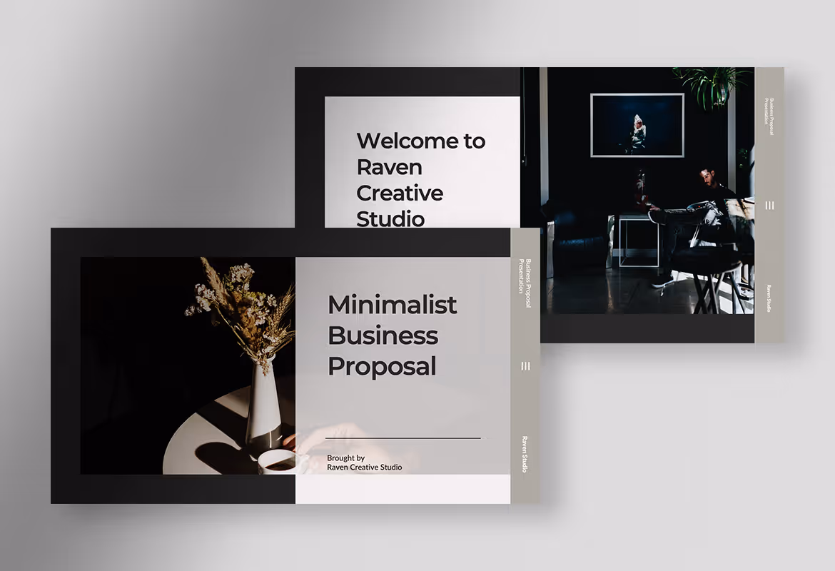 When starting a new business, it is important to have a recorded document that can project a realistic plan for your business. It helps you to find out the challenges and the risk while running your business. Therefore, a business proposal holds an important role to minimize the miscalculation of your plan. Besides, the appearance of your business proposal has to be attractive to catch the attention of your potential investors and audience. If you are looking for a captivated presentation template, Raven, a stone-grey minimalist business proposal presentation, is the best option for you.