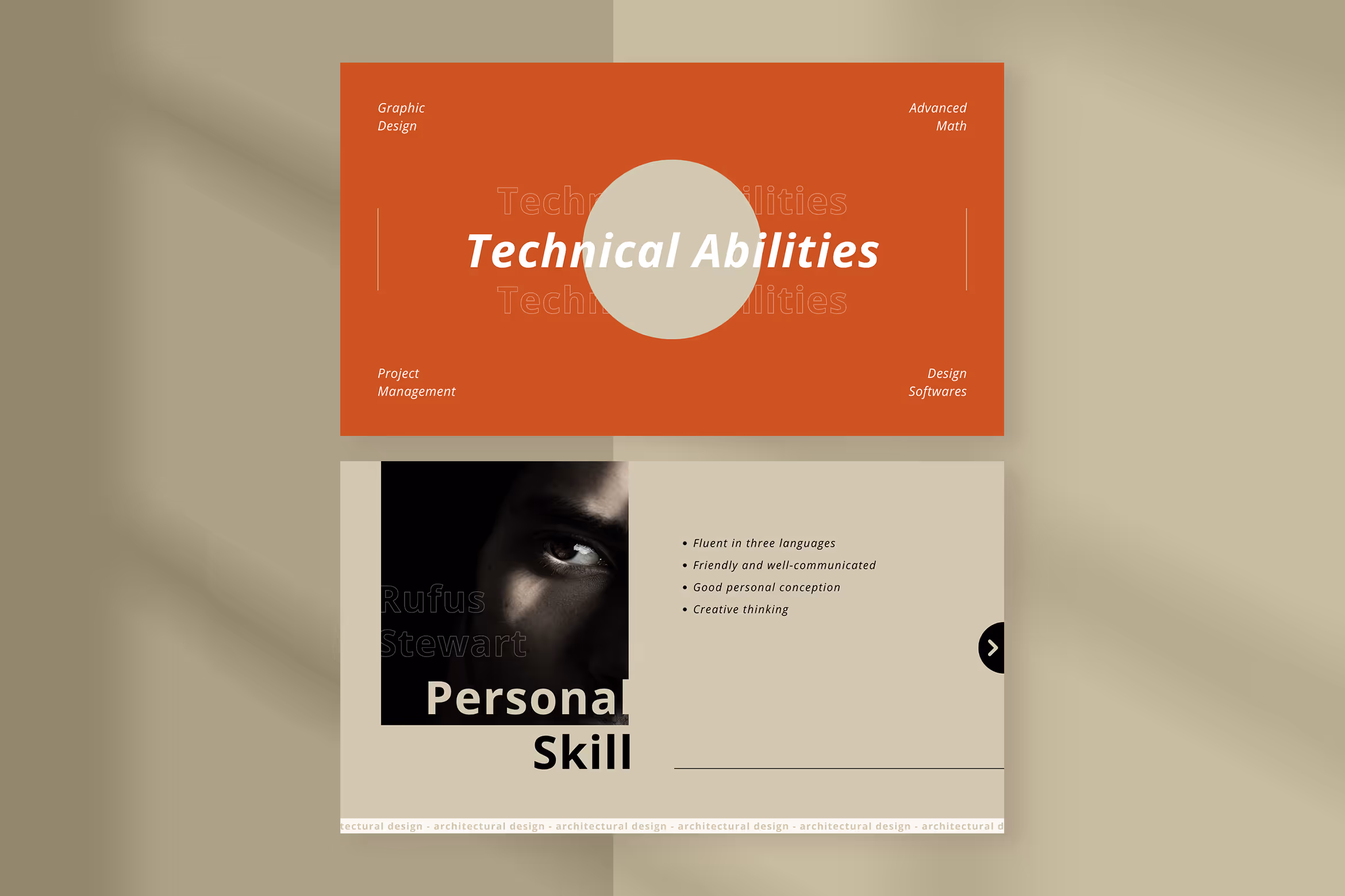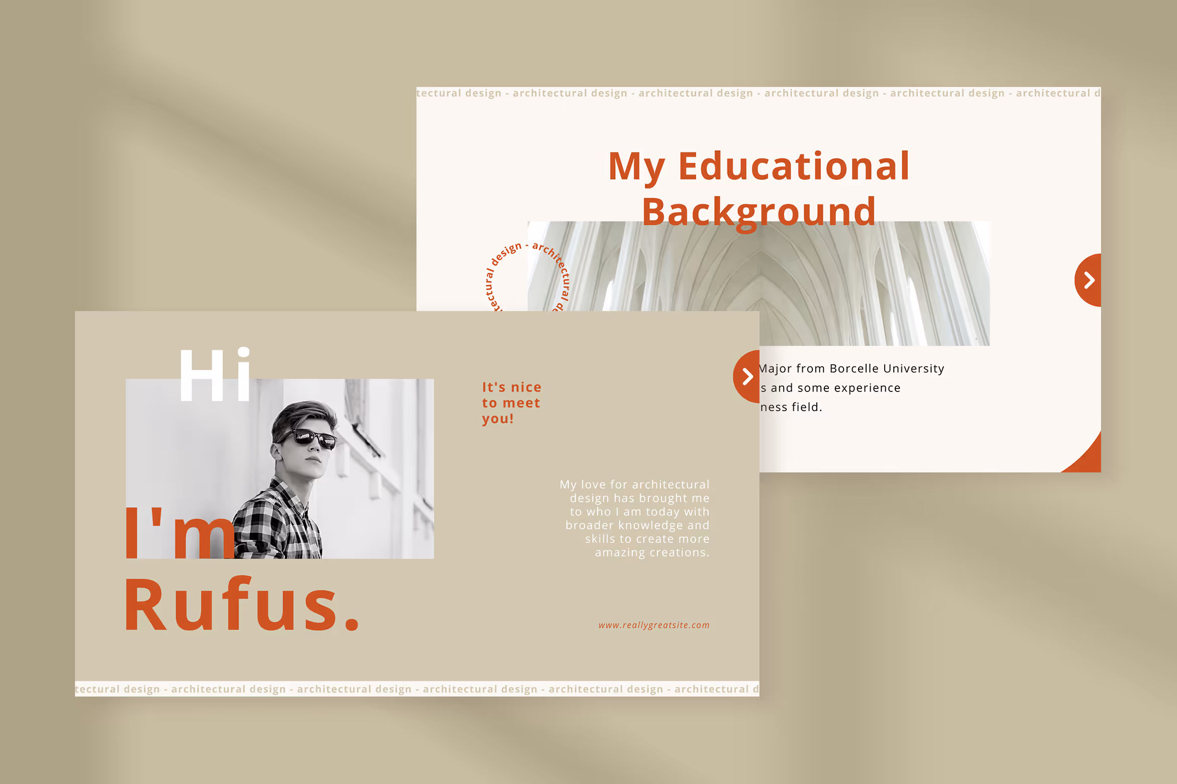 The modern yet retro style offered by this template makes it perfect for anyone, especially the young generation, that wants to show enthusiasm and intention for good work. The red color, like fire, represents this enthusiasm, while the white, black, and oyster color as complements create a nice appearance to capture the recruiter’s heart. This introduction is perfect for your digital application, digital cv, digital portfolio, or even as an introduction presentation.