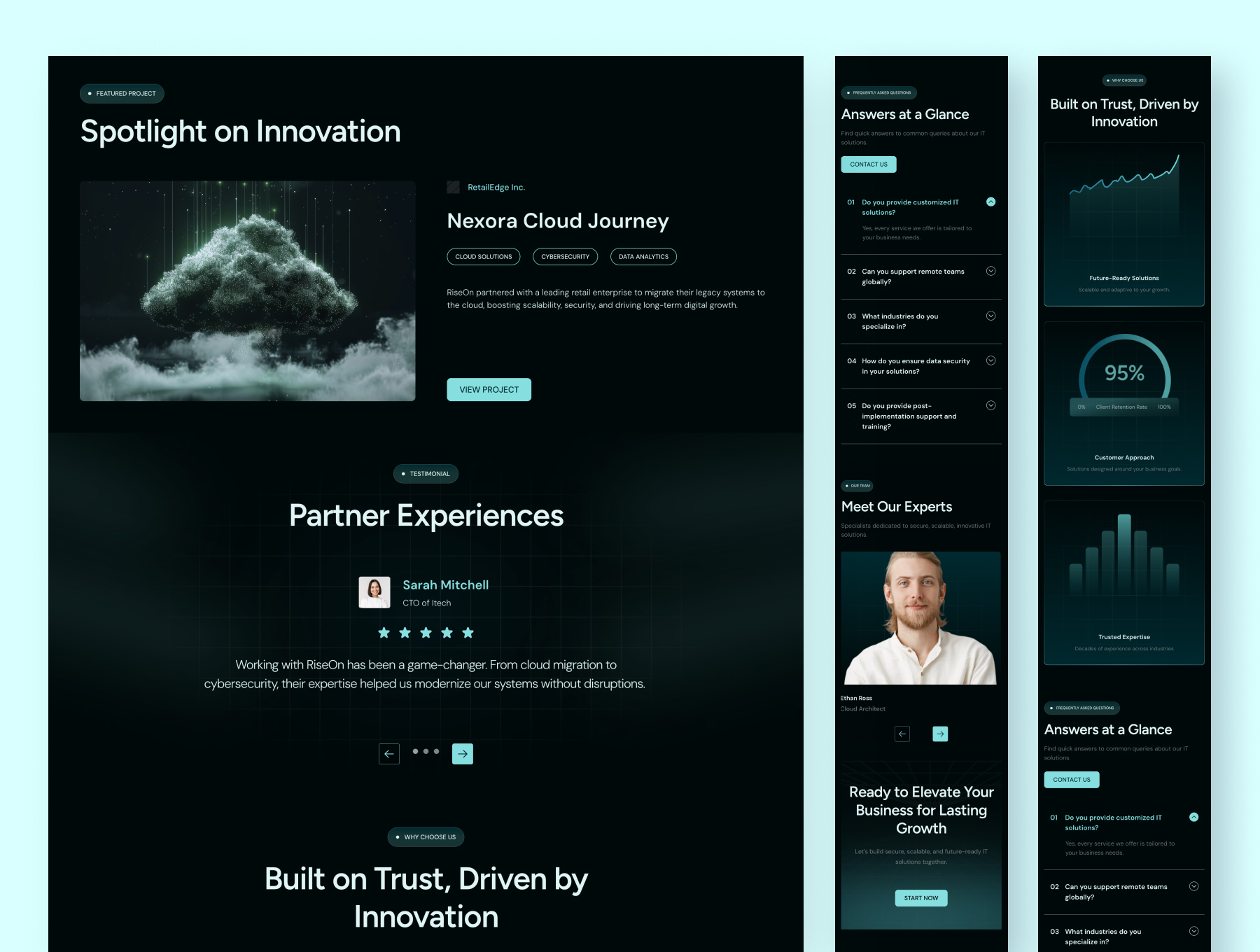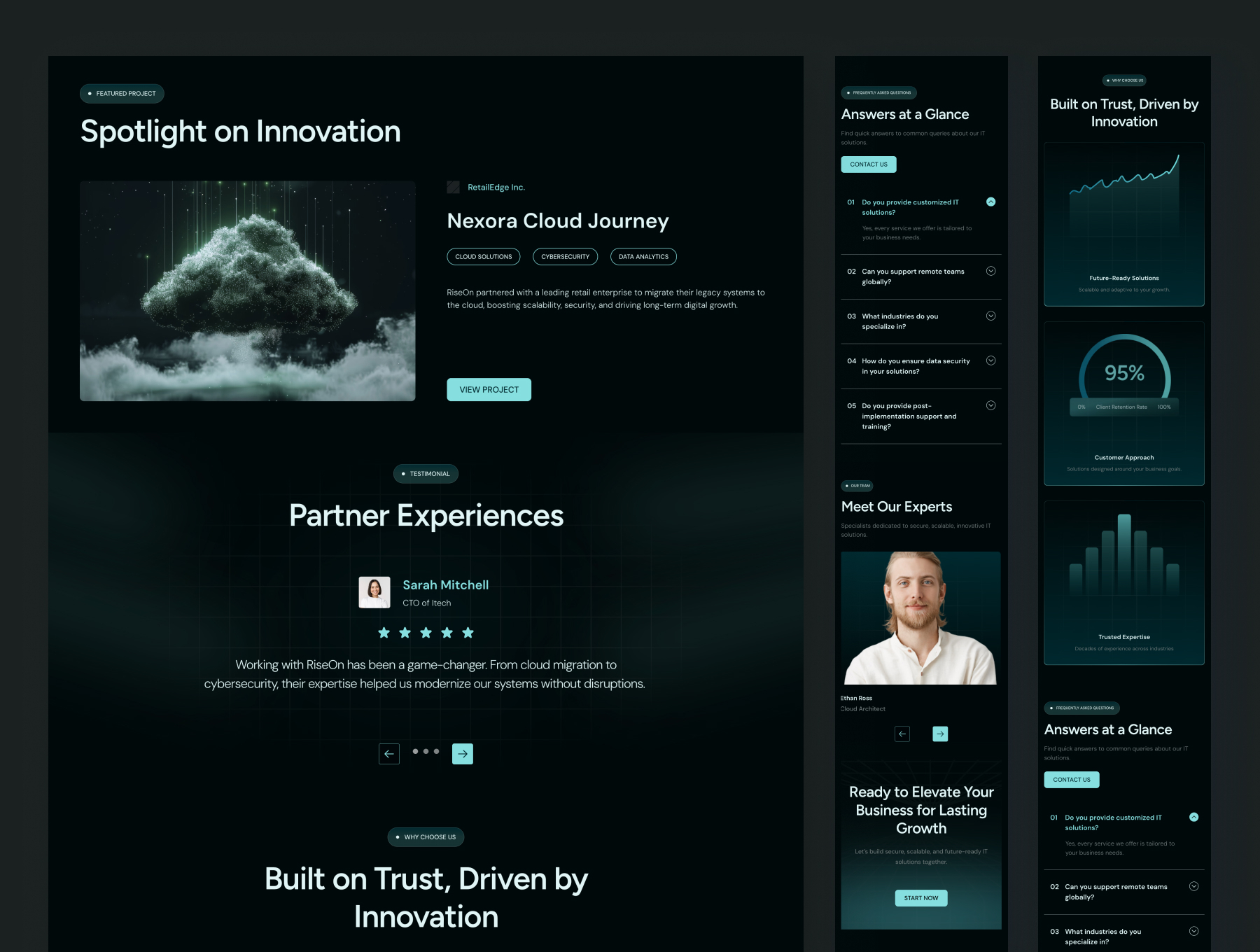 By combining modern aesthetics, structured storytelling, and intuitive components, RiseOn elevates your IT brand and position you as a trusted partner for long-term technology growth.