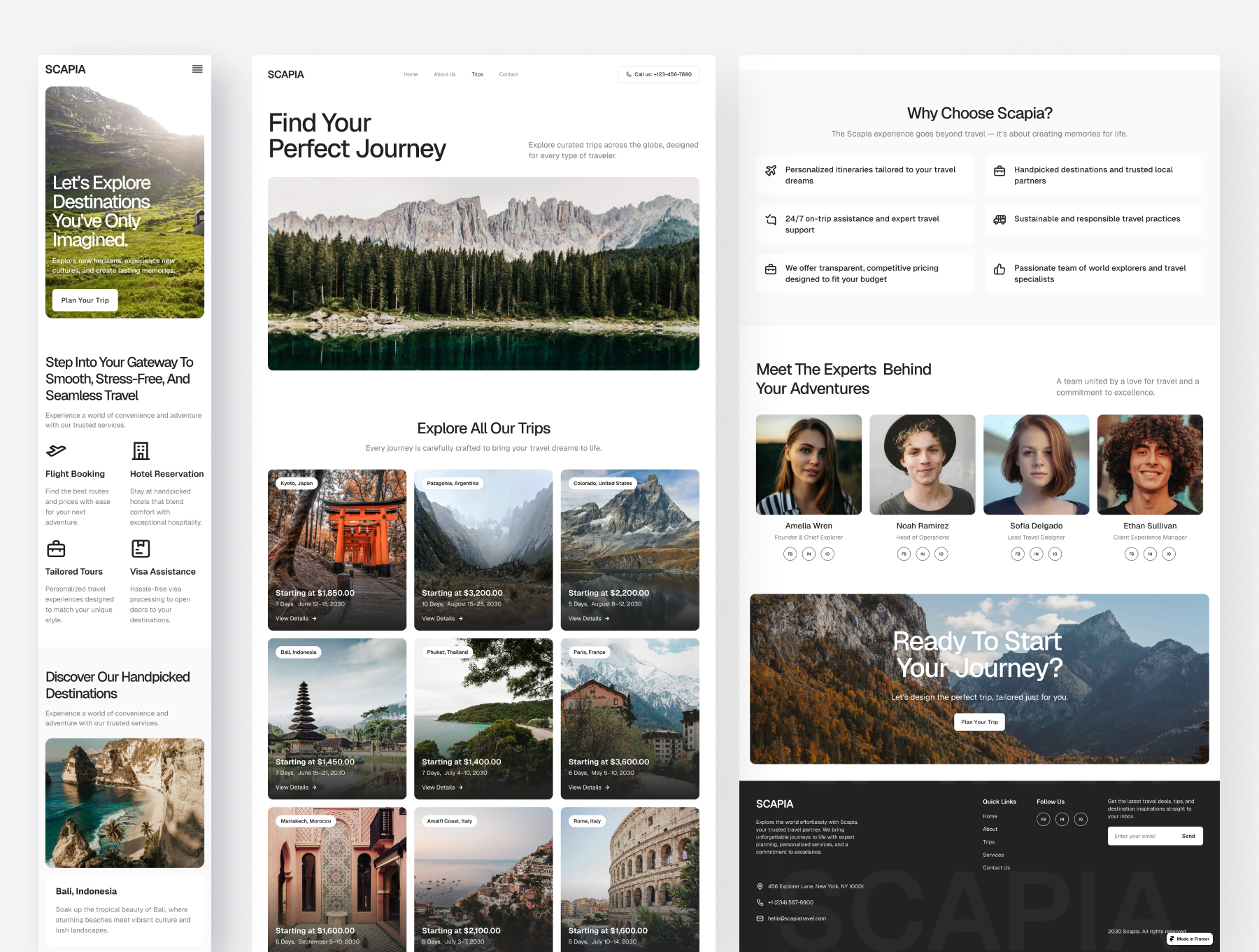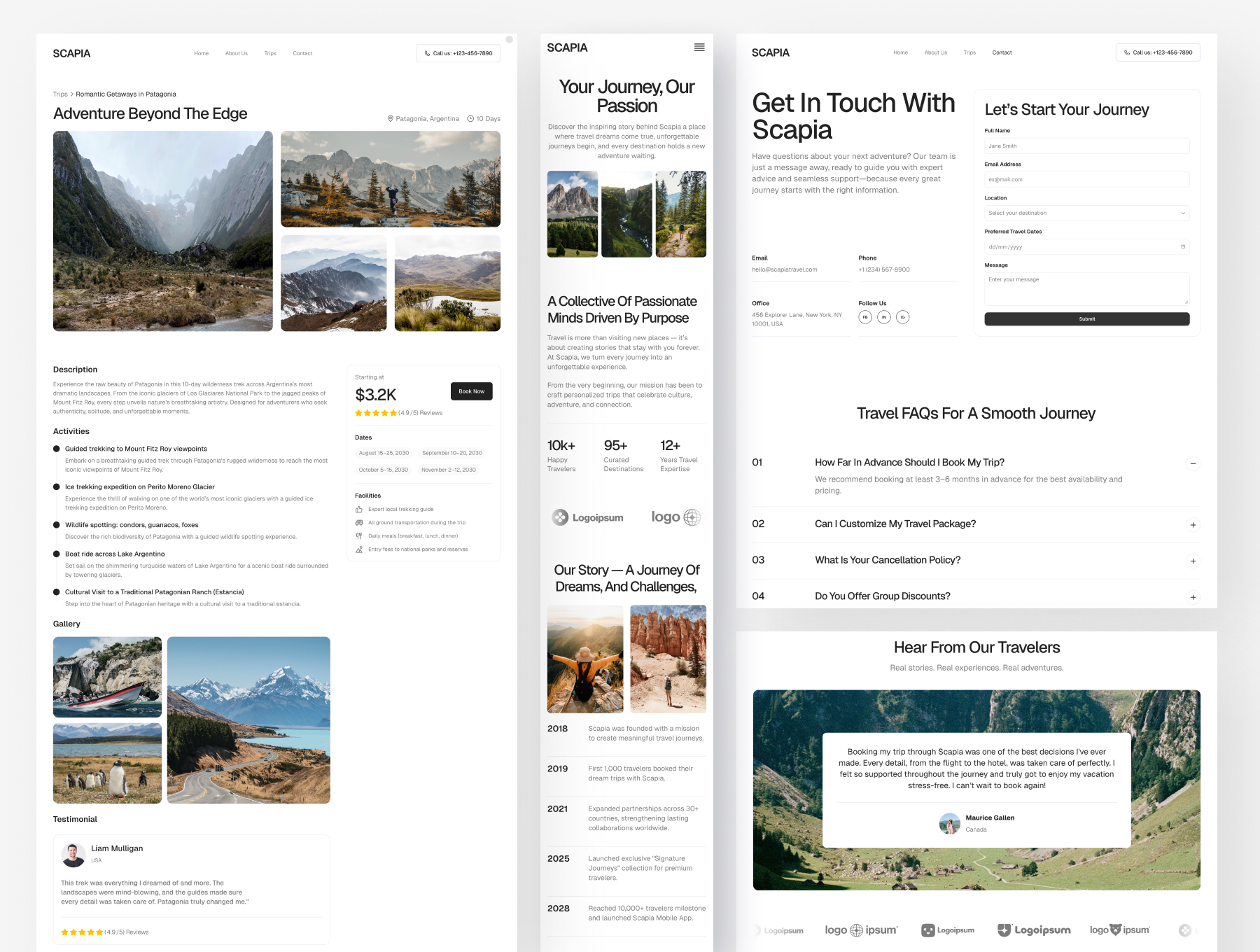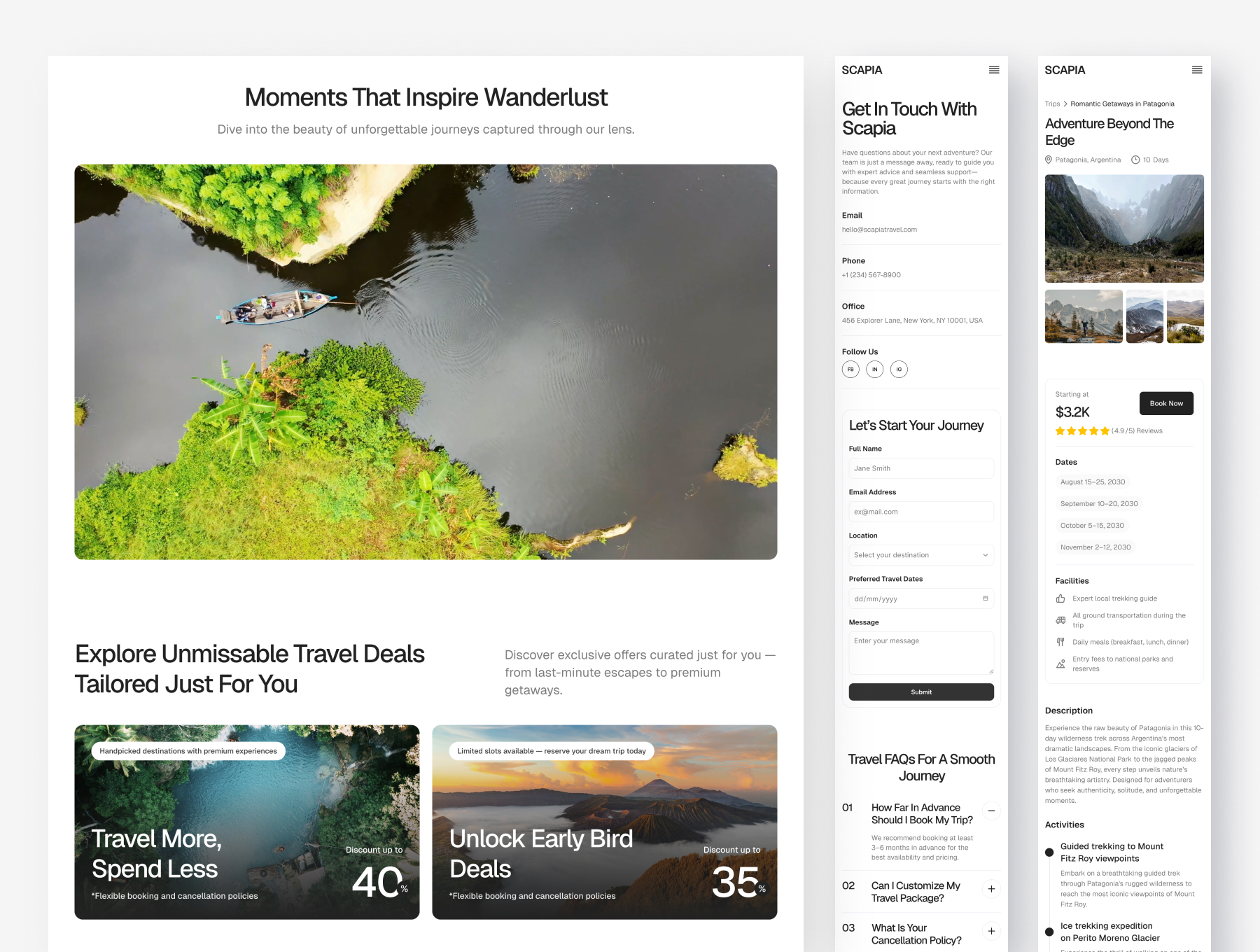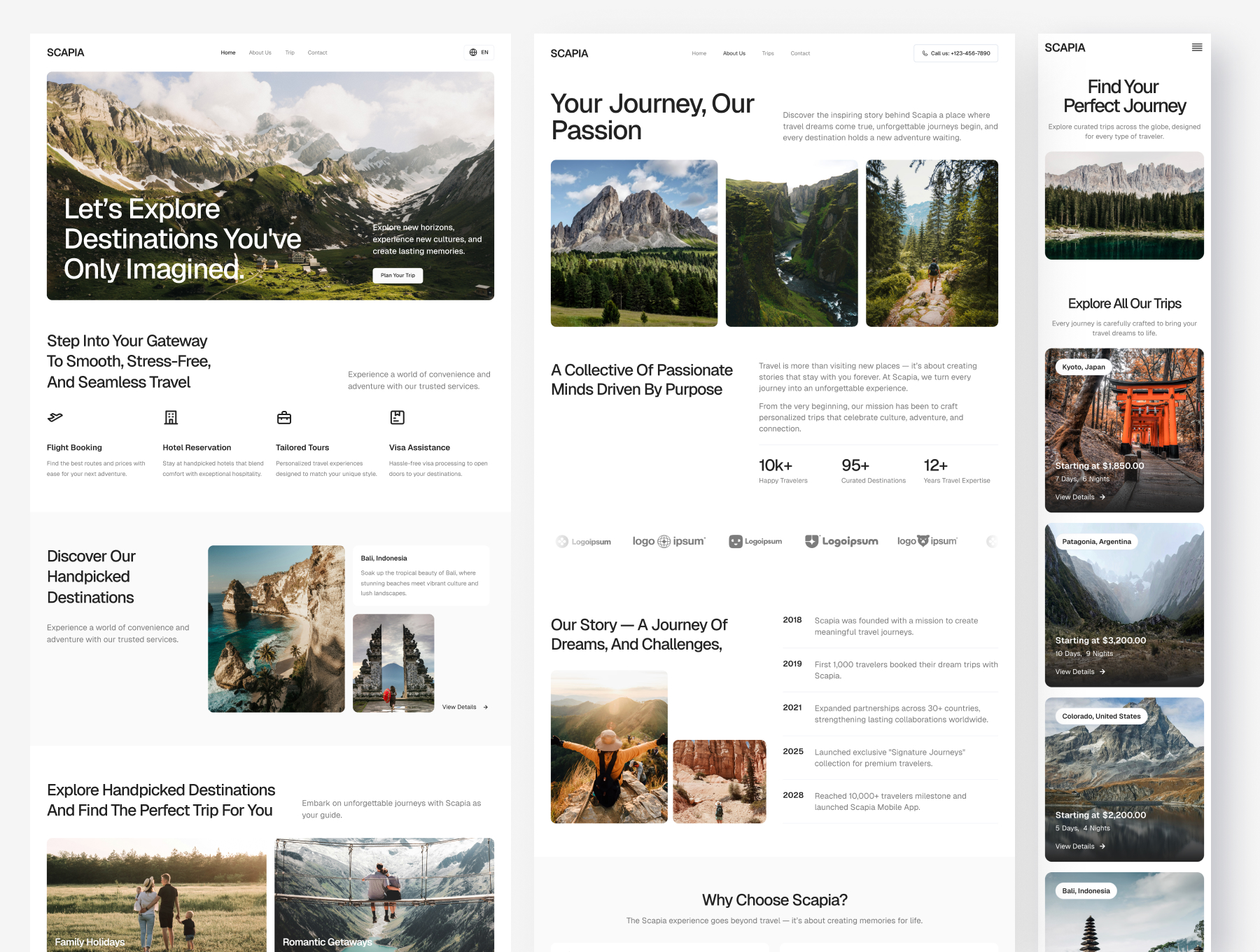 Built with a balance of sophistication and wanderlust, Scapia combines timeless elegance with modern usability to create a visually immersive travel experience.