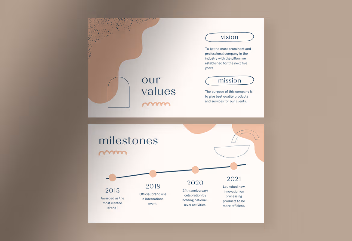 Using the colors like chocolate milk candy, this template offers an abstract but simple design so you can present a fun but still professional presentation. A well-organized layout with a proportional composition makes this template easy to use and the information you want to share will be easier to understand and comprehend. Make your company profile more attractive and eye-catching using this template.