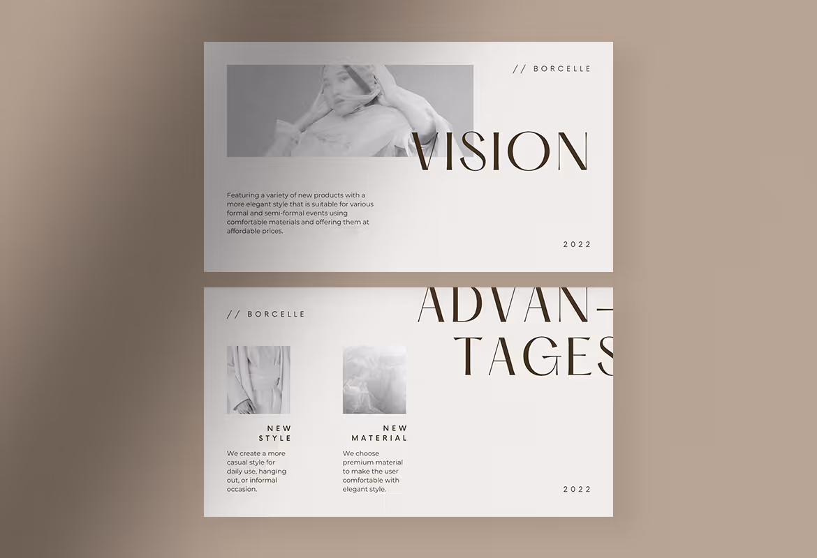 The elegant atmosphere in this template is very suitable for the fashion brand, while the simplicity of the design makes your brand presentation more eye-catching that can help you to keep the attention of your audience. The well-organized layout of this template will help you make the presentation faster, neater and presentable. Convincing your clients, partners and customers becomes a piece of cake.