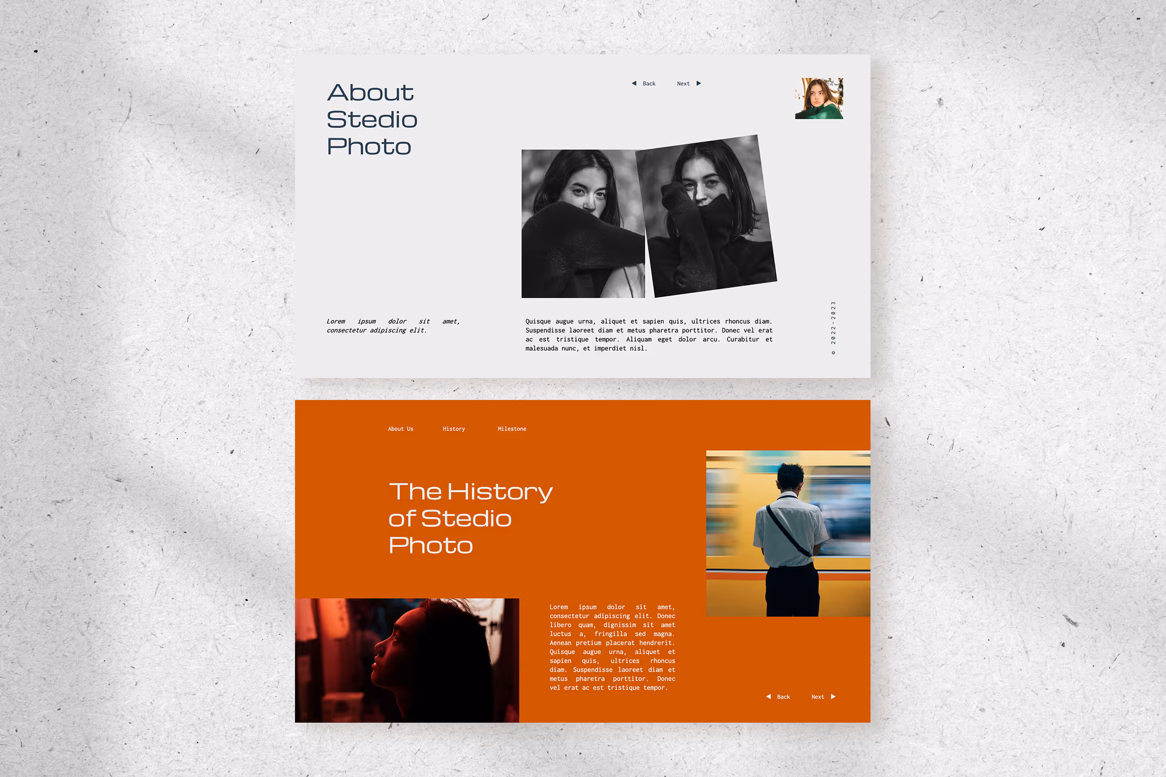 Highlighting your previous works, this template is perfect to introduce your photo studio. It adopts simple and minimalist concept that pleases the eyes of your audiences. Besides, this template creates an alluring color palette combined with high-quality images that effortlessly elevate your professionalism. Furthermore, this template has a well-organized template that makes it even more captivating. Introduce your company aesthetically with this fascinating presentation template!