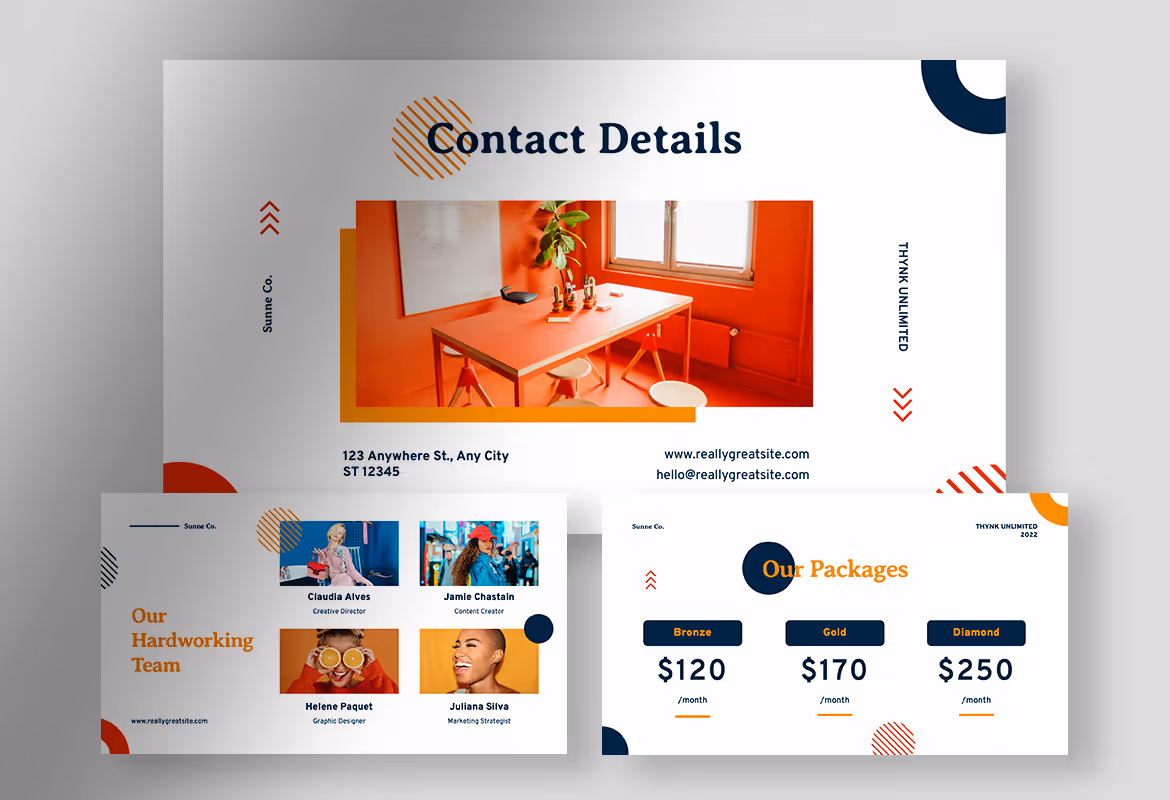 This template is specially designed to help you deliver your business plan ideas through an attractive presentation layout. Besides, this template has an interesting color combination of navy, red, and orange that meet a contrast white background. Adopting a creative concept, this template is perfectly suited for digital marketing agencies or any other creative field industries which like soaring the unique values. Grab the attention of your audience through this attractive presentation template!