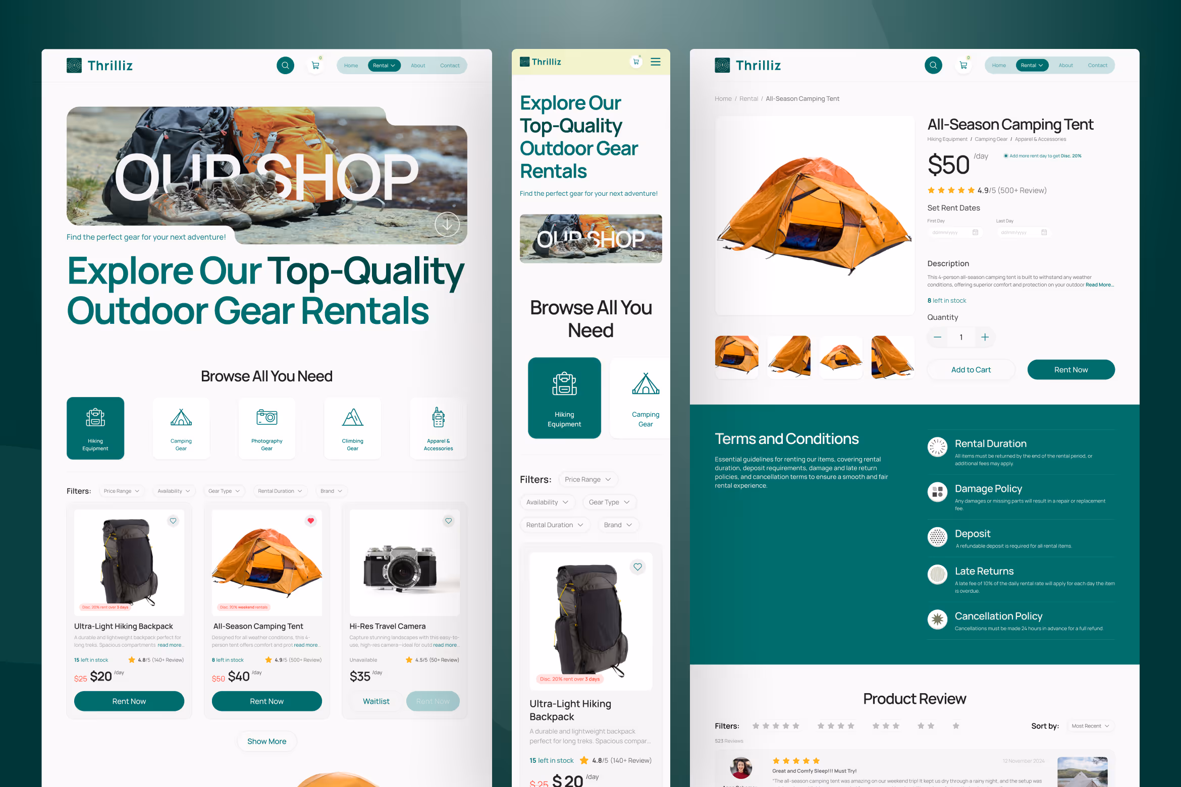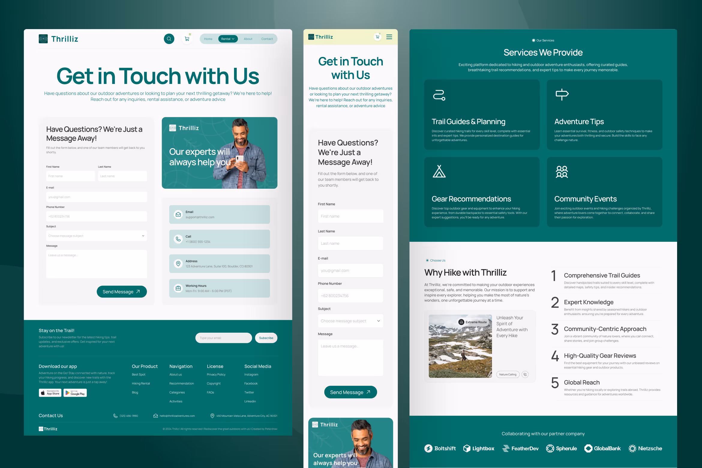 Embark on your next design adventure with Thrilliz, a modern hiking & outdoor activities website UI Figma template. Perfectly crafted for outdoor enthusiasts and adventure platforms, this template features essential pages. Its modern, nature-inspired design combines a refreshing green and white color scheme with bold visuals and clean typography, creating a vibrant and inviting atmosphere. Whether showcasing scenic trails or promoting gear rentals, it offers the perfect foundation to engage your audience and inspire exploration. Easy to customize and professionally designed, it’s your ultimate tool to bring outdoor adventures to life.