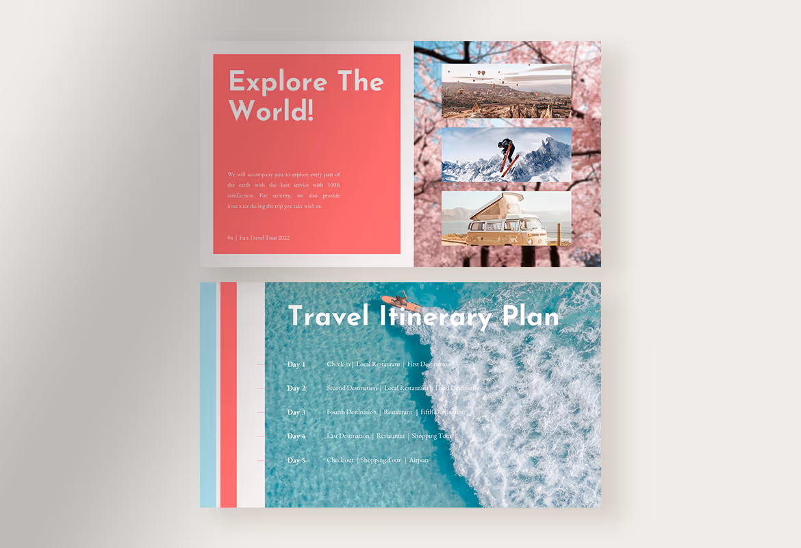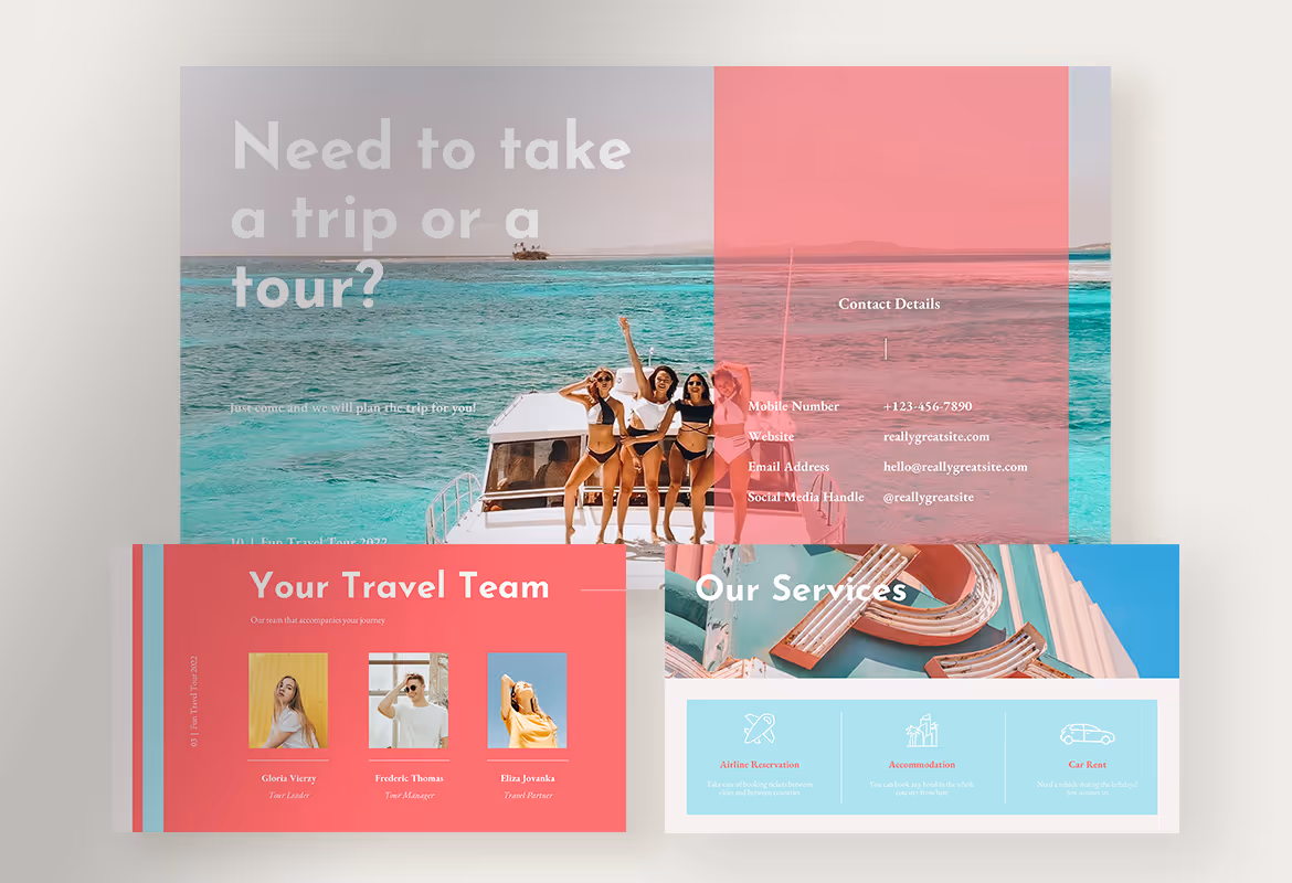 The blue color in this template transfers a cool sensation as if we play in the water, while the bright red color gives a sense of excitement that shows that everyone can enjoy a pleasant holiday. This atmosphere will attract your audience’s attention and help you convince the audience to take a holiday package or travel service from your agency. The well-organized layout on this template can help you present a neat and understandable presentation so it will confuse no one.