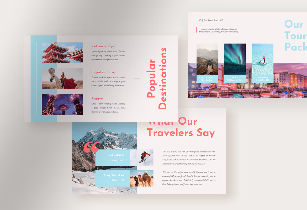 Vacation or traveling has become one of the human needs. This activity can help people relax so when it’s time to return to work, school or other activities, they can be more effective and productive. To have a satisfying vacation within the specified time, these people usually will seek help from a travel or tour agent. Be their number one choice to travel with by presenting an outstanding presentation using Travent, a refreshing fun travel tour presentation template.