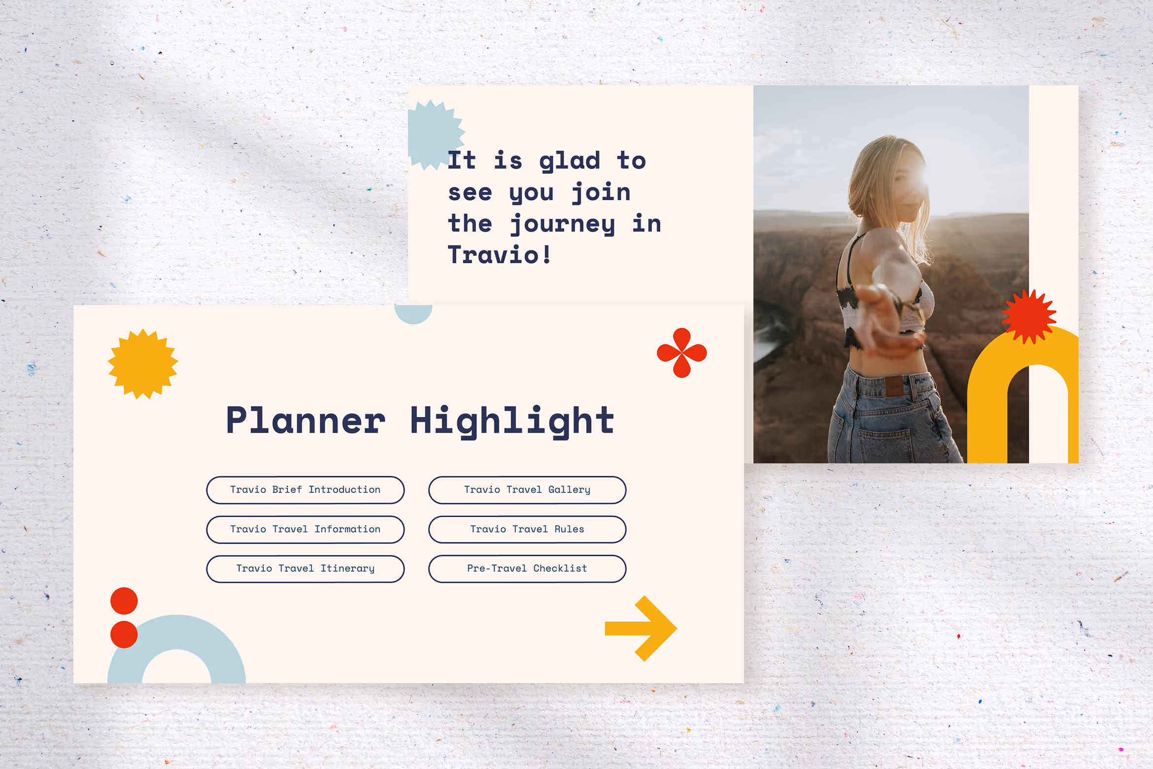 Planning everything well from the start is your job as a travel planner and agent. It will satisfy your client and prevent any unwanted things. With good planning, you can maximize your client’s time in every place to visit and enjoy. To make your planning time with the client more enjoyable and appealing, it never hurts to use an attractive presentation template. Let’s start the fun journey by planning it fun using Travio, the clean geometric travel planner presentation template. You can apply this template to your travel planner or your clients.