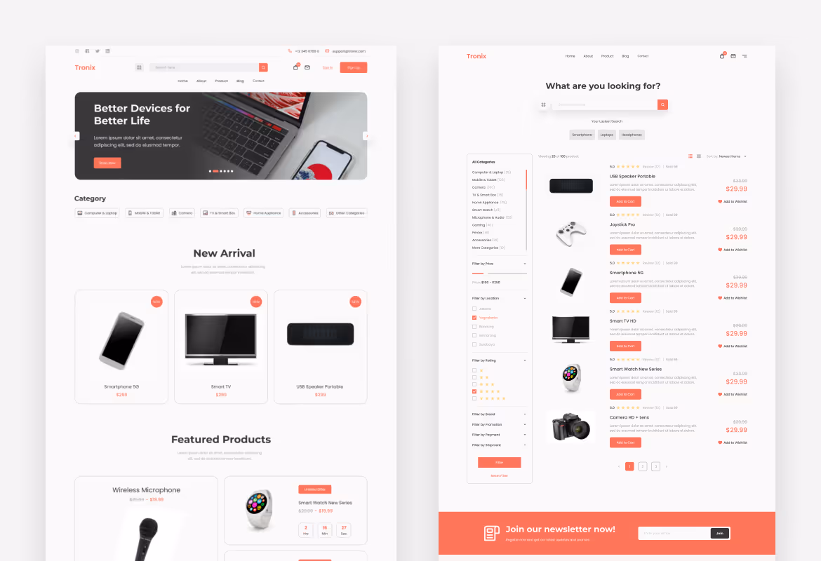 Although most electronic products are classified as luxury products with high prices, people now do not hesitate to buy them online. With the guarantee of quality, authenticity, safety and convenience in shopping, electronic e-commerce has many active users, just like any other e-commerce category. Make your electronic e-commerce more comfortable to use by the buyers using Tronix, a clean electronic e-commerce website template. This template is perfect for electronic e-commerce admin, e-commerce website owners or online shop owners.