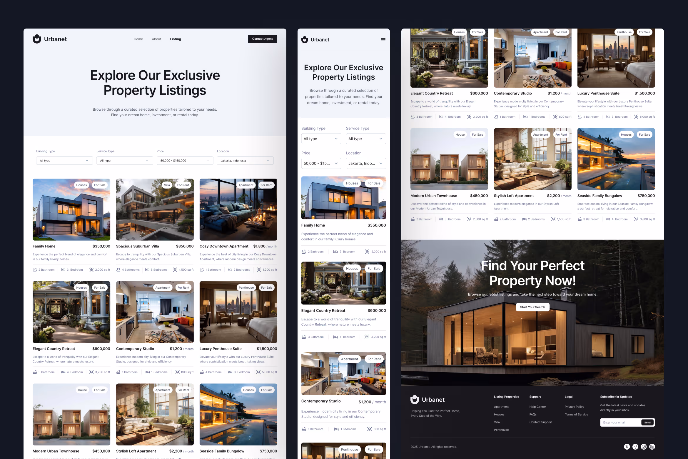 Give your real estate platform a professional edge with Urbanet, a refined website template for seamless property browsing. Designed for seamless navigation and user engagement, this template includes five essential pages, ensuring a smooth browsing experience for property seekers. Whether desktop or mobile, its responsive design guarantees optimal performance across all devices.