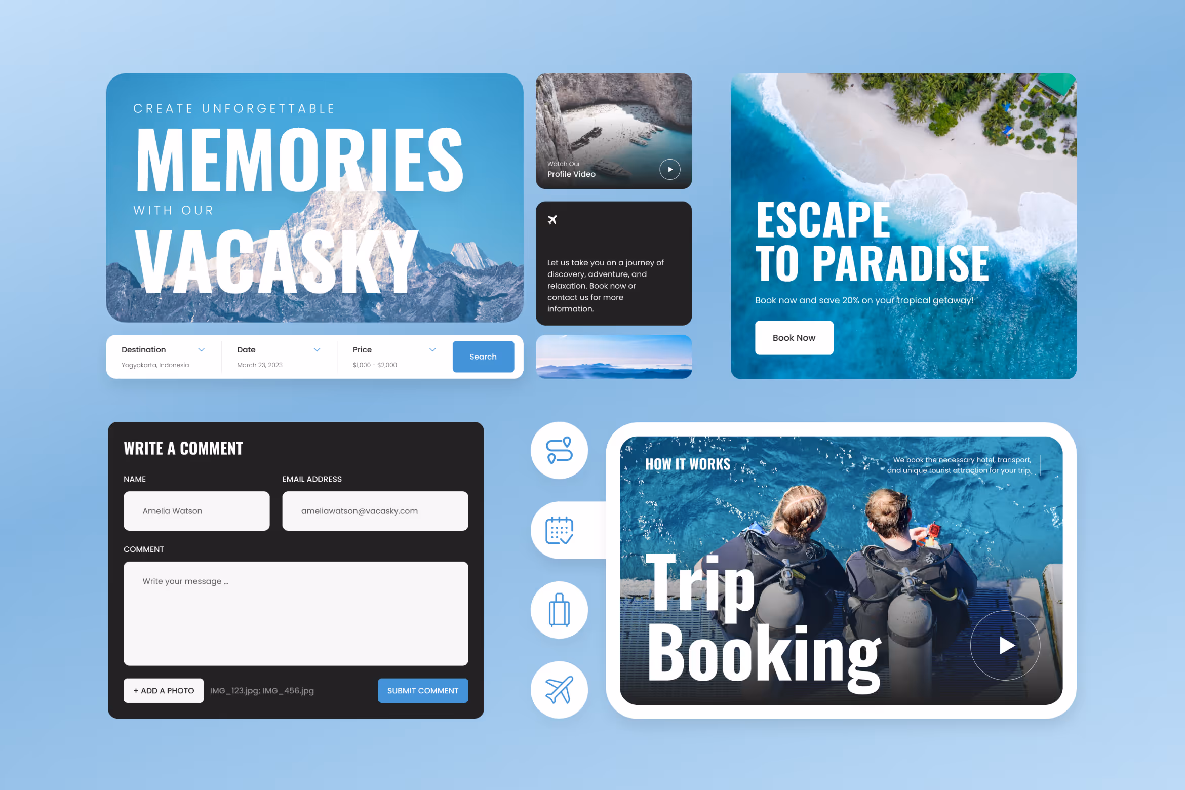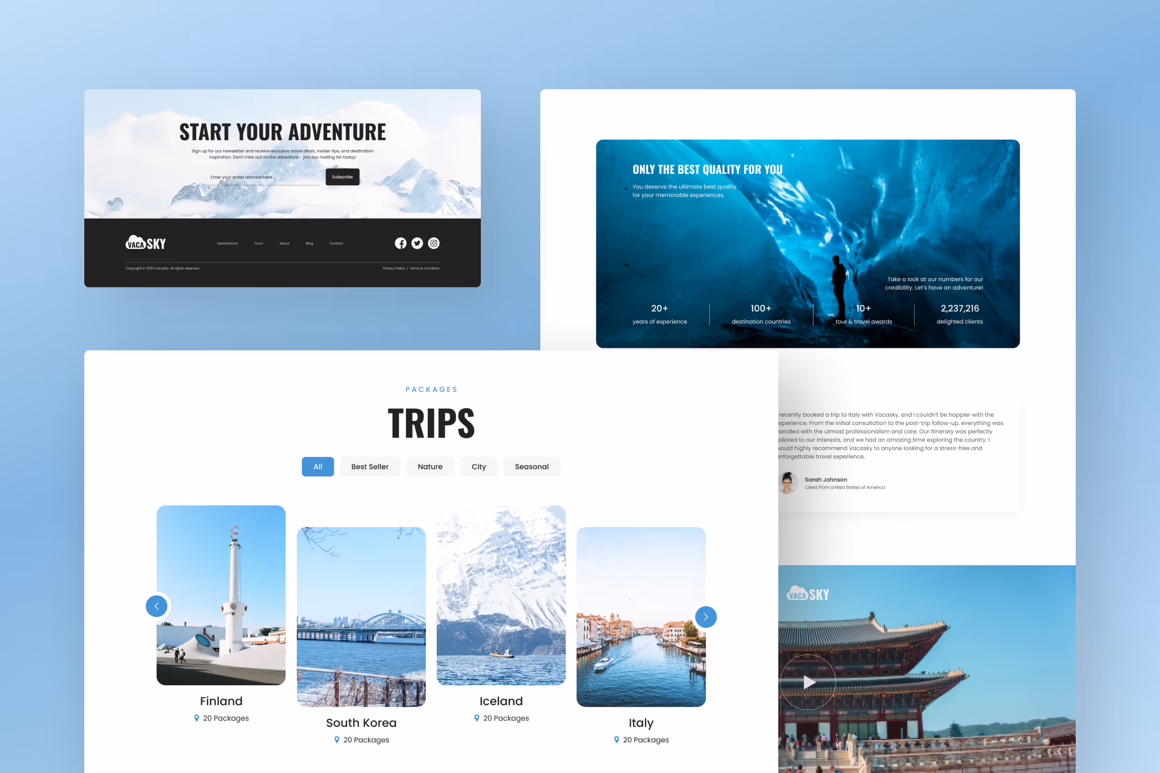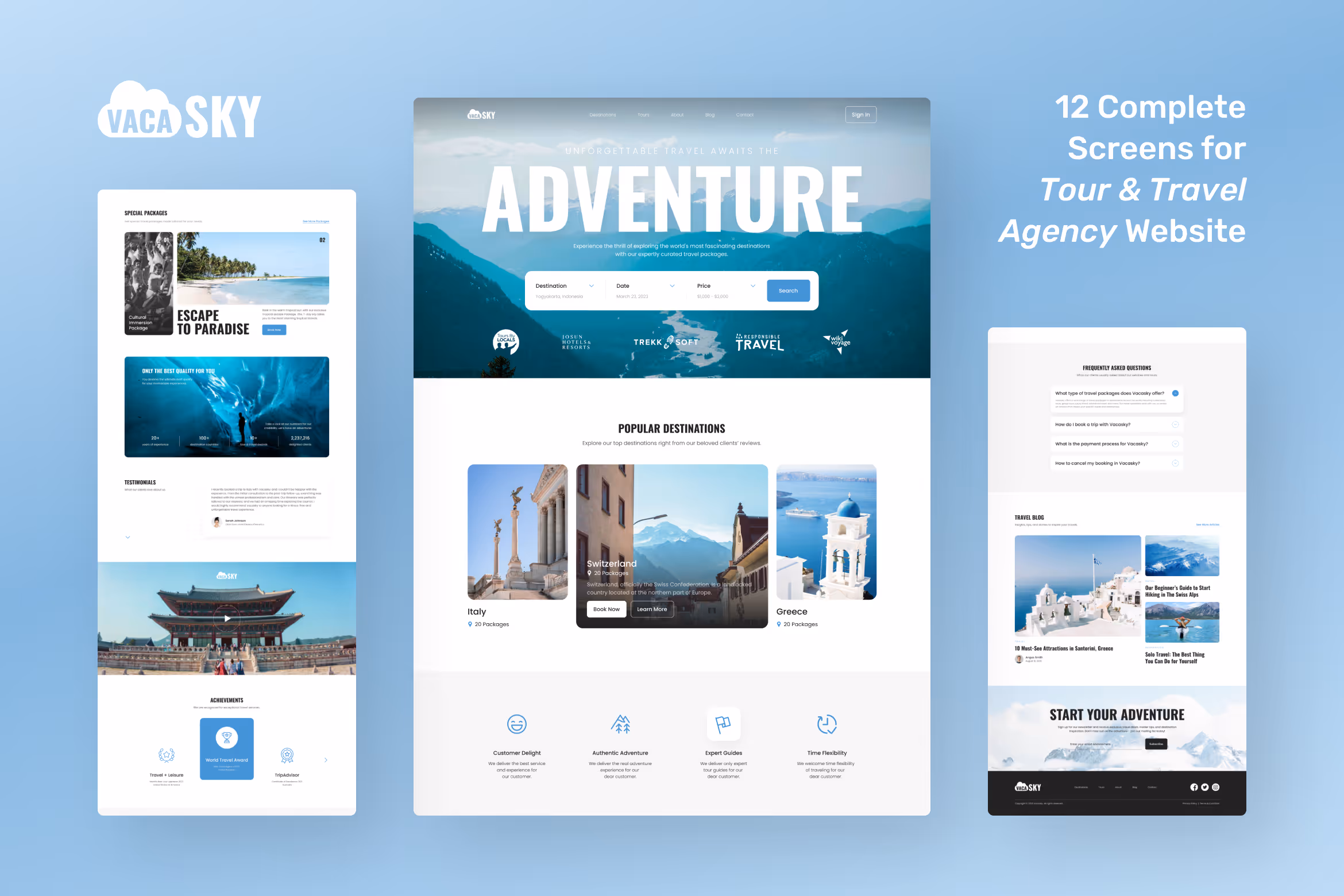Running a travel and tour agency can’t only depend on the conventional way. To get more connections with partners abroad and clients all over the world, you have to take advantage of the digital platform, especially those connected to the internet, like a website, to the max. Since the travel and tour website presents images from travel destinations, you have to pick a template that can accommodate it. That is why, Vacasky, the clean modern tour & travel agency website template, is created to meet all the travel and tour agency promotional and marketing needs.