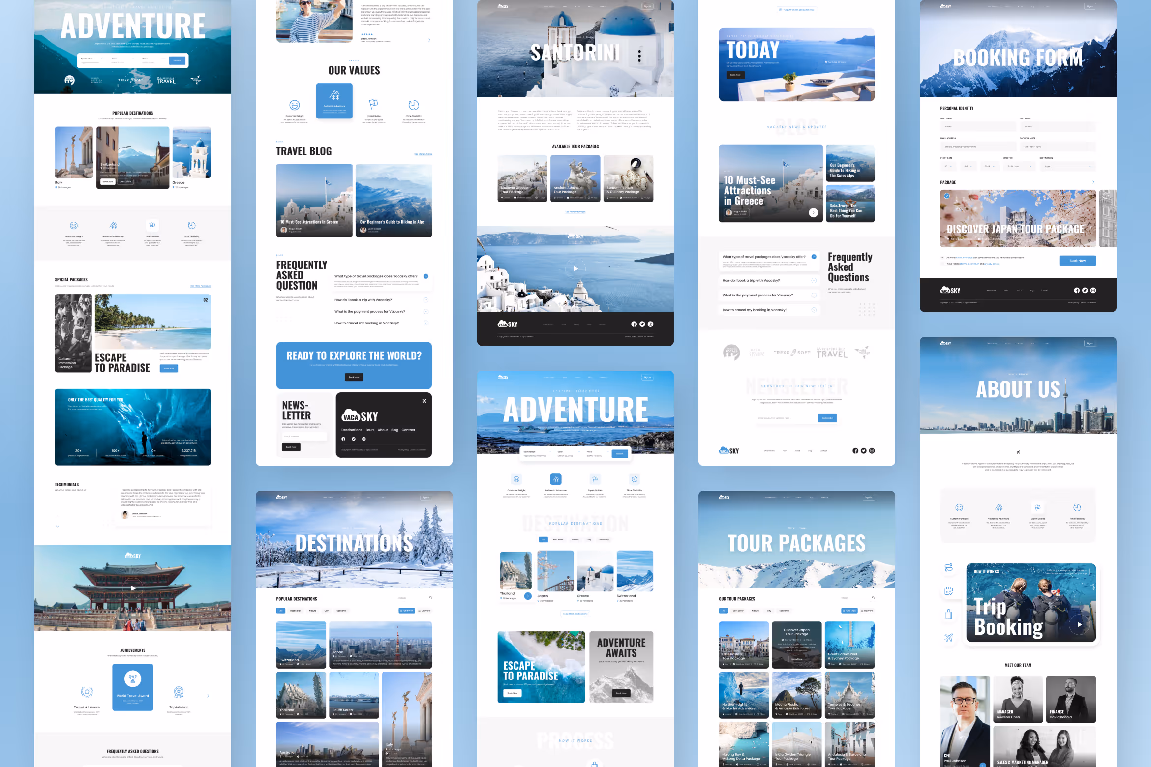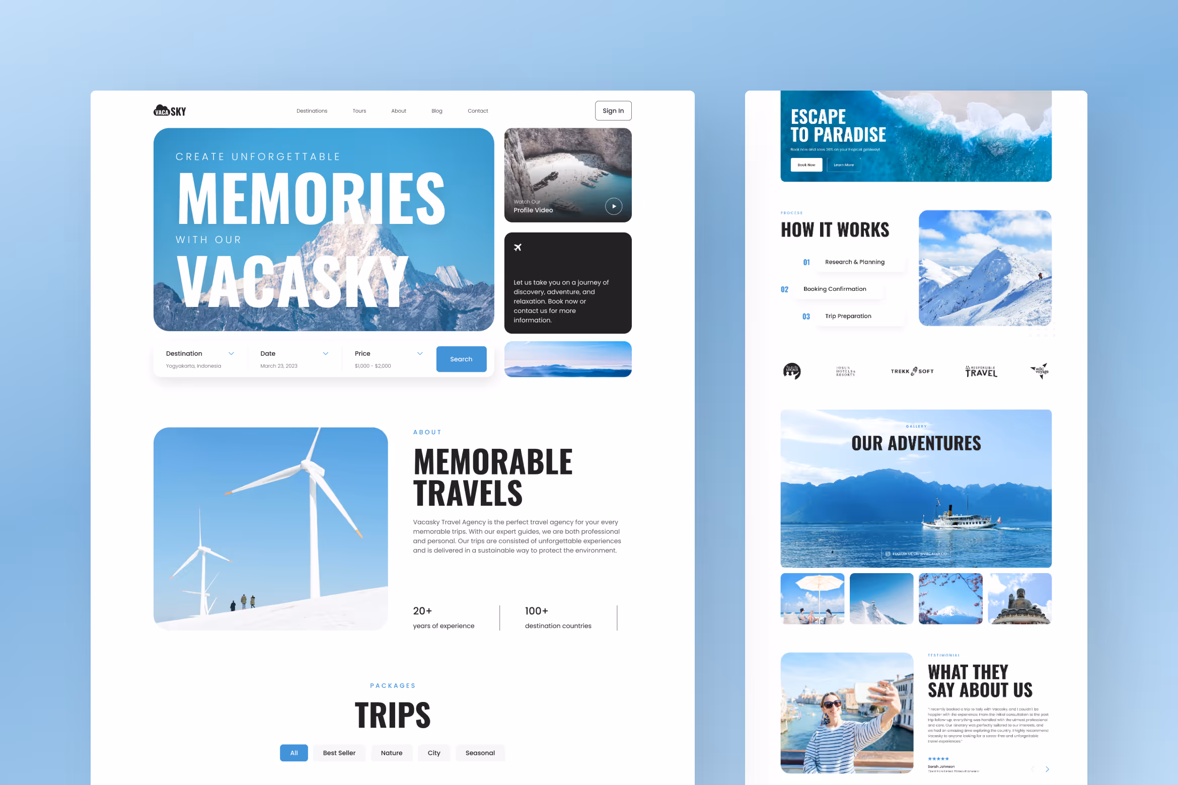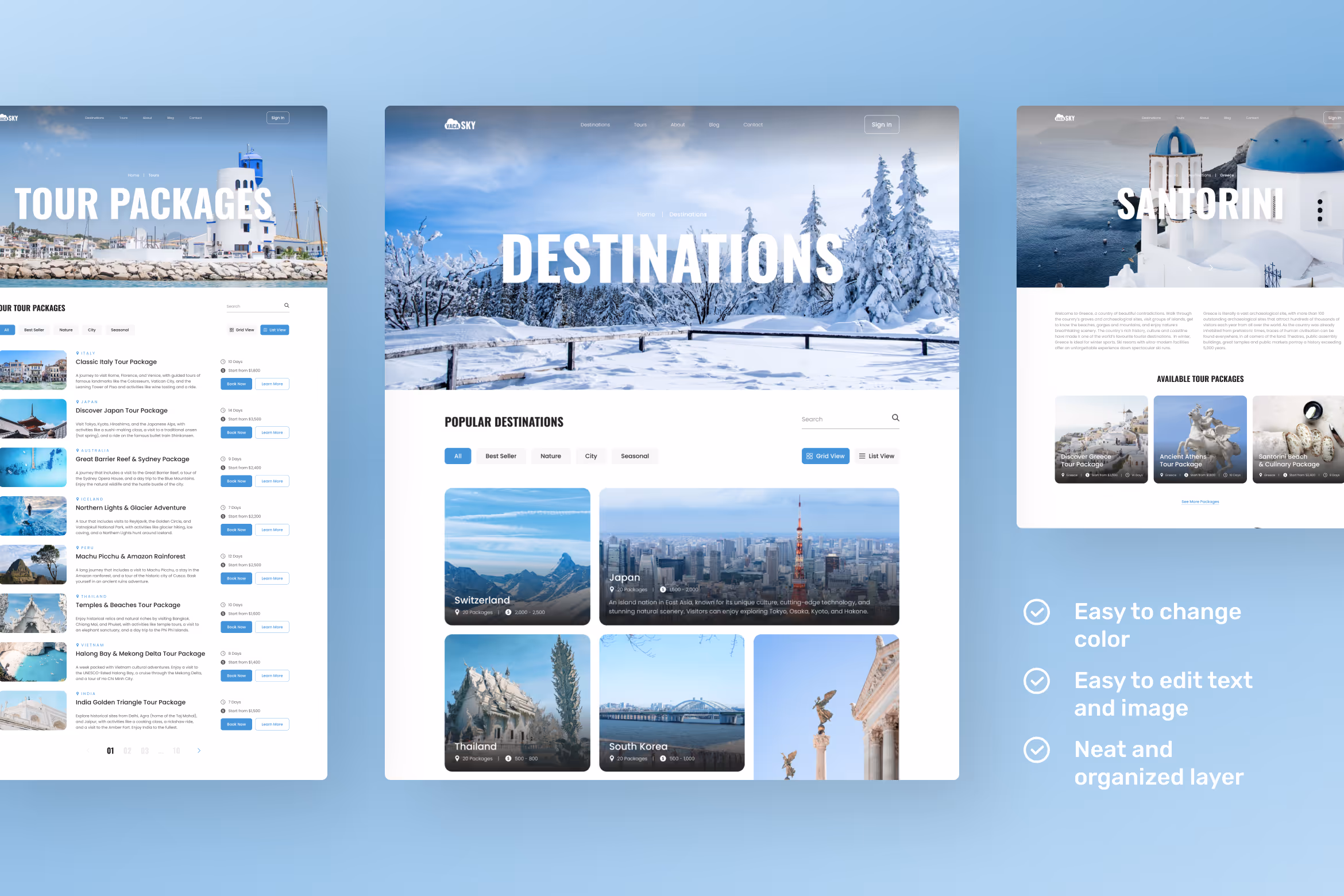 This template uses white as the background color, combined with blue as an accent and black for the text. Without exaggerate elements supported by well-organized layout creates a clean and neat look that can help your website visitors explore it easily. Plus, its simple and friendly user interface allows anyone to use the template easily. In this template, you can get three different website homepages, destination page, destination detail, tour list pages, tour detail, booking page, blog, blog detail, and about us page. Make your business website more visitor friendly using this template.