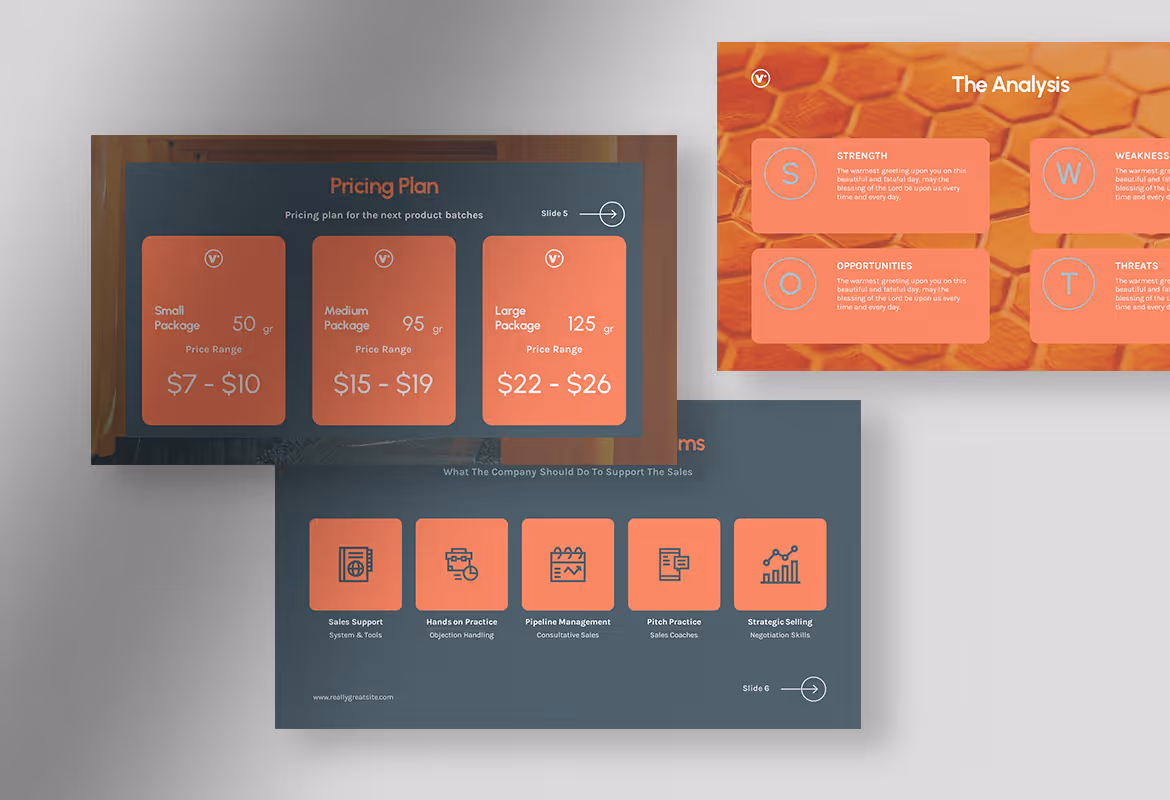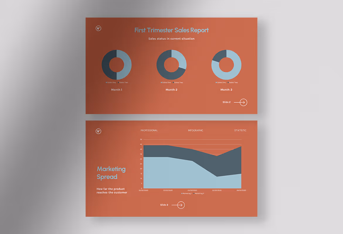 With the combination of terracotta and gray in the background color, it gives a solid and firm appearance that can convince not only your teammate or supervisor but also the director boards, clients, partners, even customers. This template also provides you with various charts and graphs with a modern touch so your infographic statistic presentation can keep the audience’s eyes on your presentation. Thus, this template will be suitable for your annual report, marketing report, progress report or any other statistic presentation.