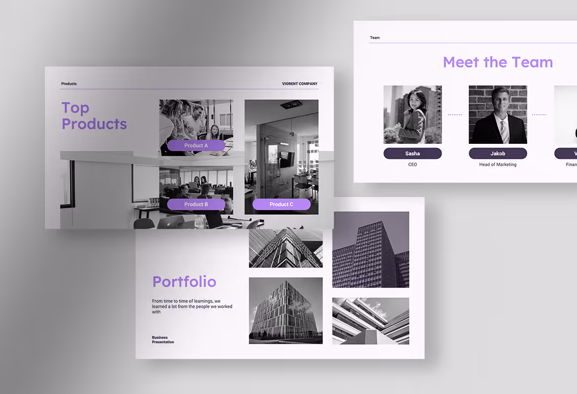 On many occasions, you have to make a presentation for various tasks or assignments in your office. There’s a time you can create a carefree business presentation. But, most of the time, you have to show professionalism before your audience. It is the best way to gain attention and show your seriousness in maintaining business cooperation. If professionalism is what you need in your presentation, our Viorent, the striking purple professional corporate business presentation template, is the best choice.