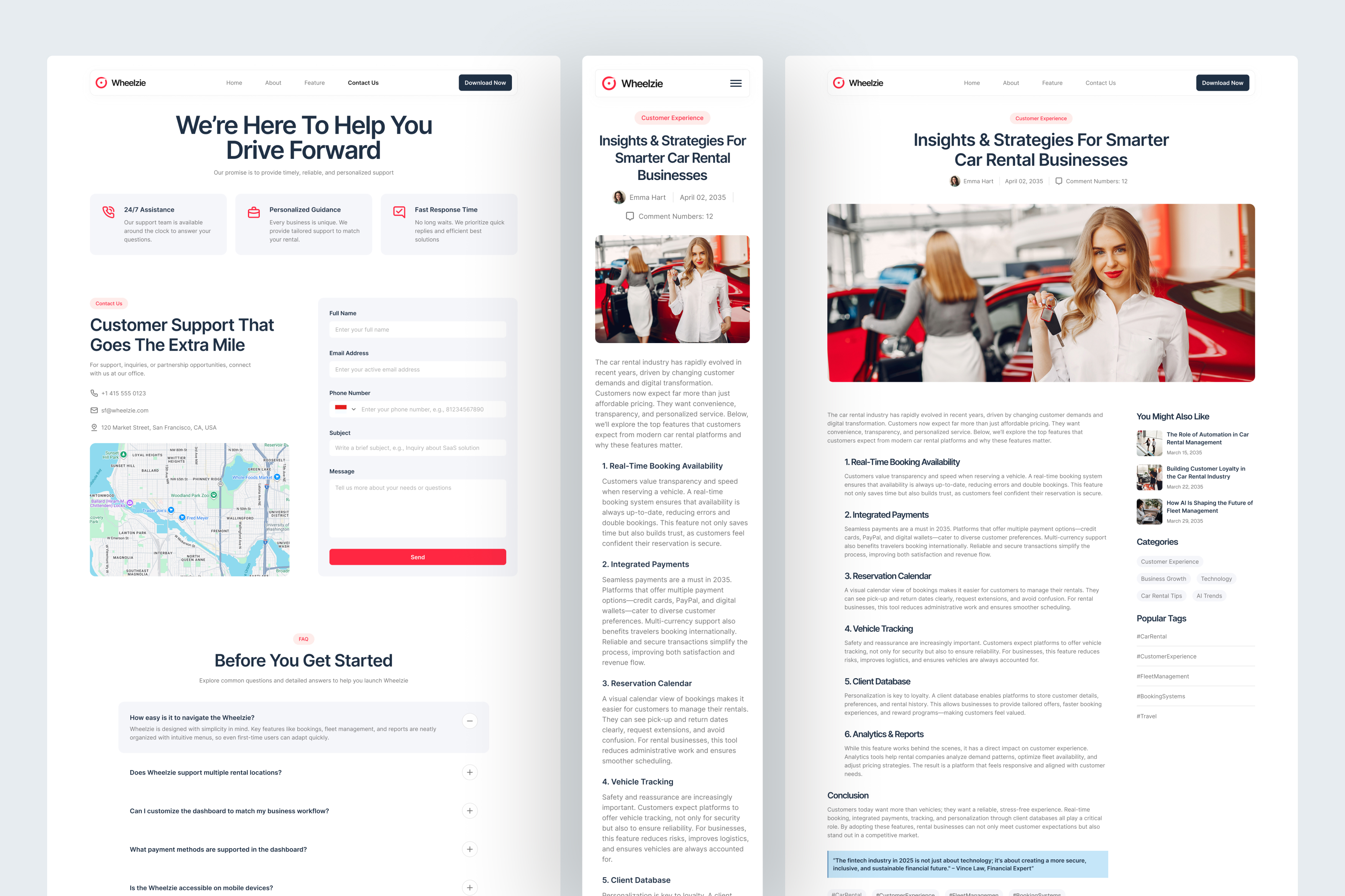 More than a template, Wheelzie is a complete visual system built to support car rental businesses as they scale, where clarity meets convenience, and smart management meets modern web design.