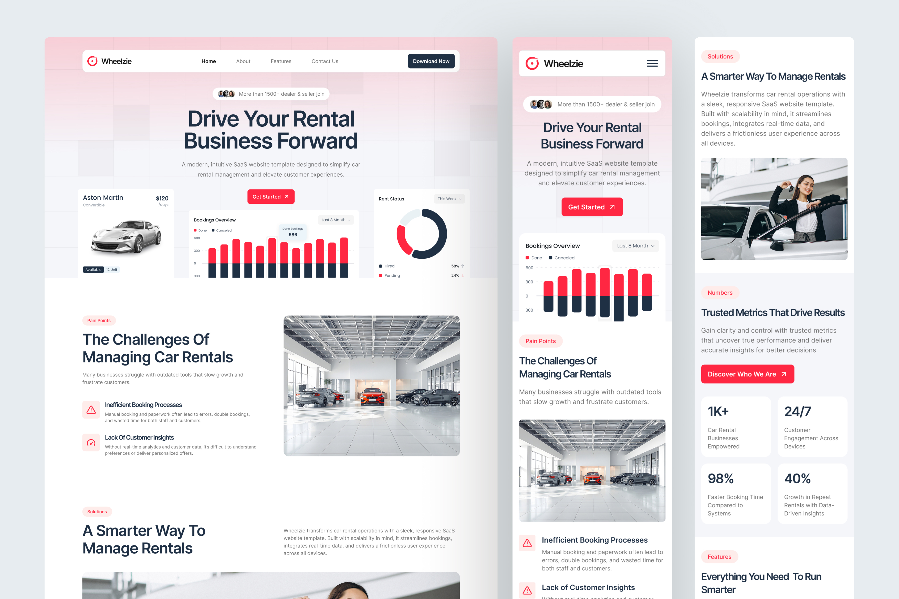 Wheelzie is built to help rental businesses communicate value clearly and quickly. While customers expect transparency, reliability, and modern functionality, SaaS companies need layouts that highlight metrics, features, and service capabilities. This template bridges that gap with clarity-first design, easy-to-digest content blocks, and strong storytelling visuals.