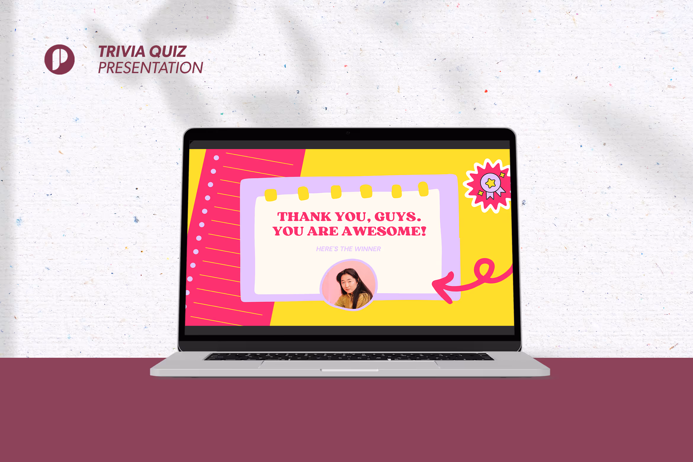 Playing games will make every gathering activity more enjoyable. Especially when you have a get-together with your close friends or family. Any game is ok, but it will be livelier when you play a trivia quiz that everyone enjoys. You can collect all the questions from every source. Then, you can present them in an attractive presentation template to make them more appealing and attractive. This Yellow Sticker Trivia Quiz Presentation template is the right choice to liven up the atmosphere and to bring your game livelier.